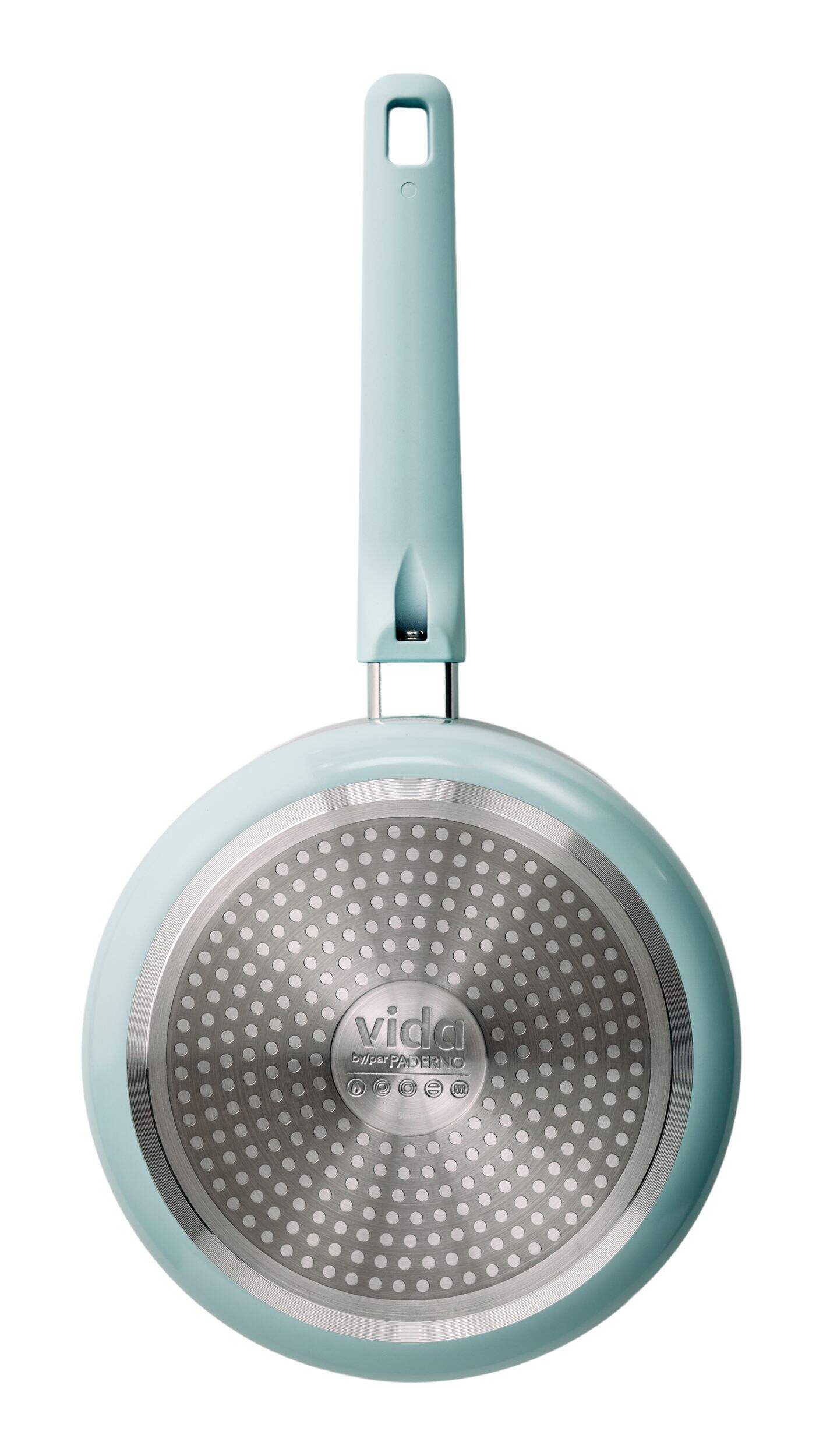 Heavy-gauge aluminum combined with a stainless steel induction bottom allows for even heat distribution and consistency for optimal cooking results
