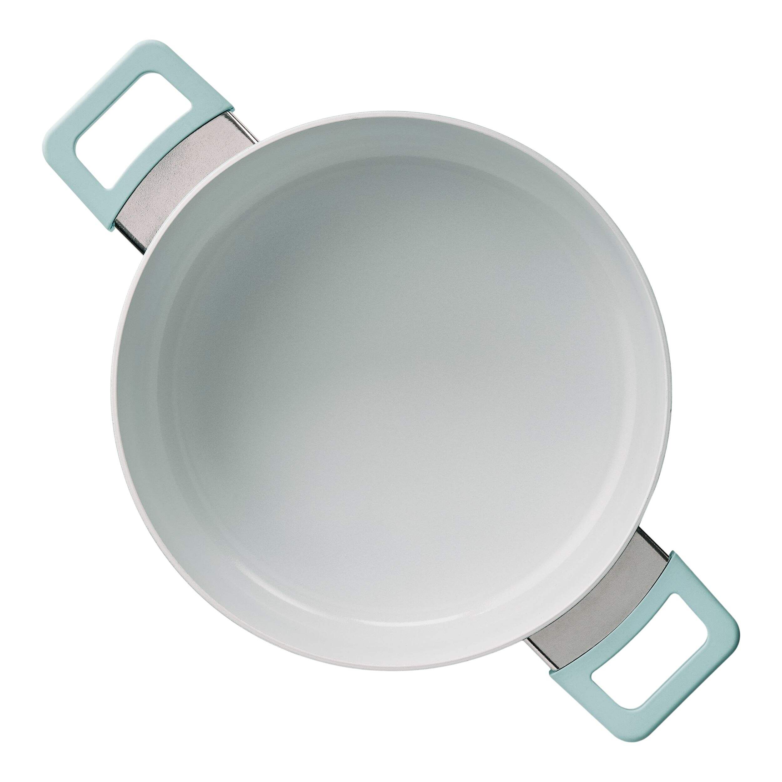 Ceramic non-stick interior coating reduces oil usage and promotes healthier cooking