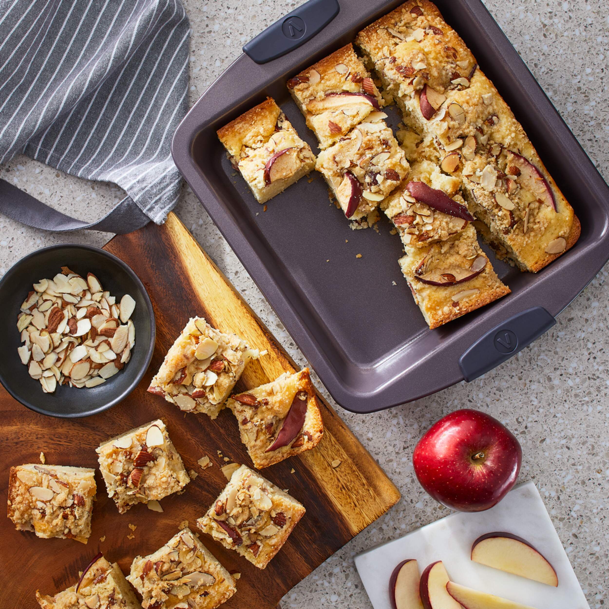 Make your next cake your best ever with the Vida by PADERNO Square Cake Pan. The ideal cookware accessory for home bakers, it features heavy-gauge carbon steel with a two-layer non-stick coating for quick food release and easy cleanup. The cake pan has silicone wrap-around handles for easy lifting, and rolled edges to resist warping. You’ll delight in producing consistent, crowd-pleasing cakes with this essential addition to your bakeware collection.