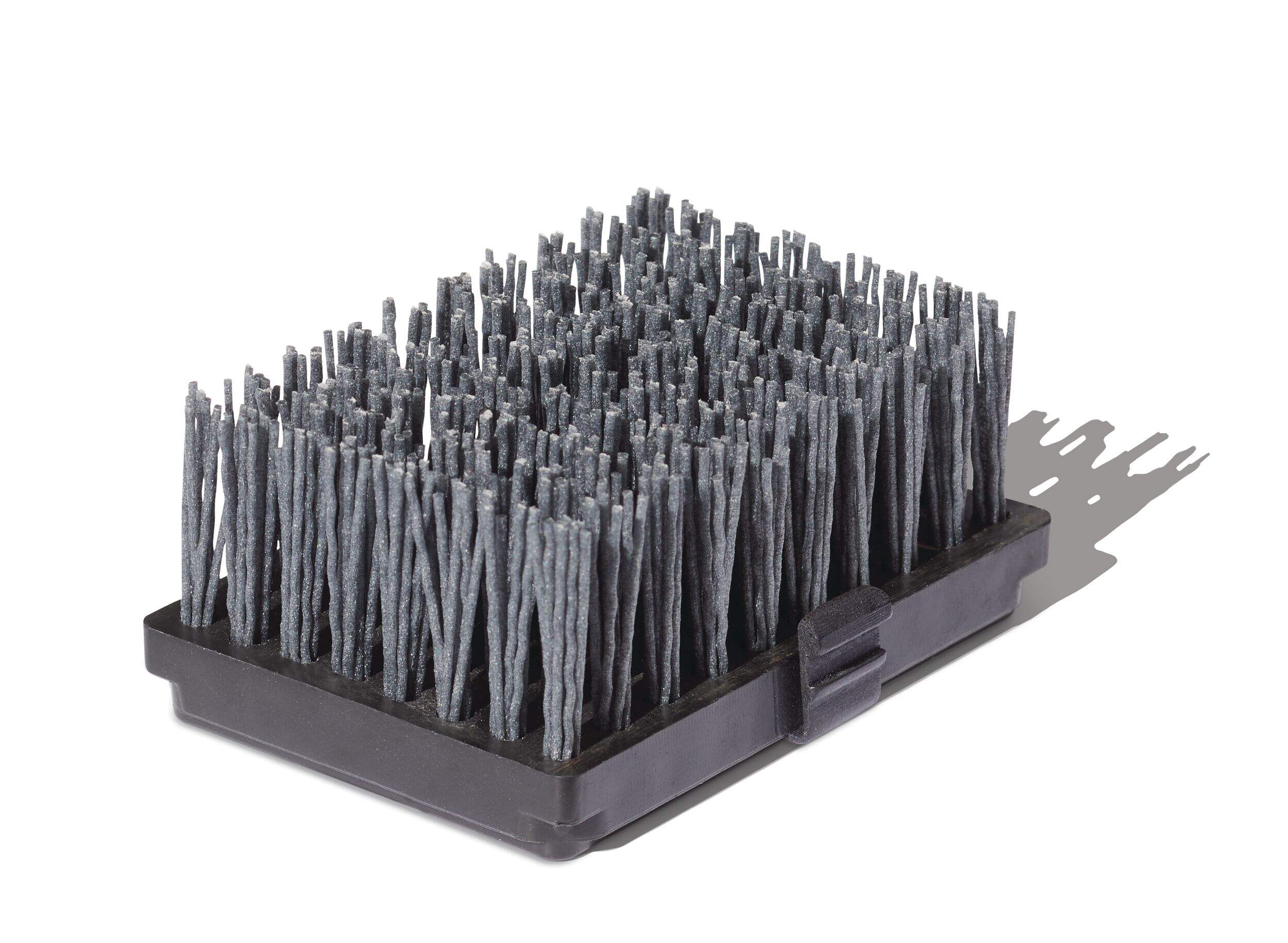 Rugged, grit-infused bristles for increased cleaning ability without the safety concerns of wire bristles
