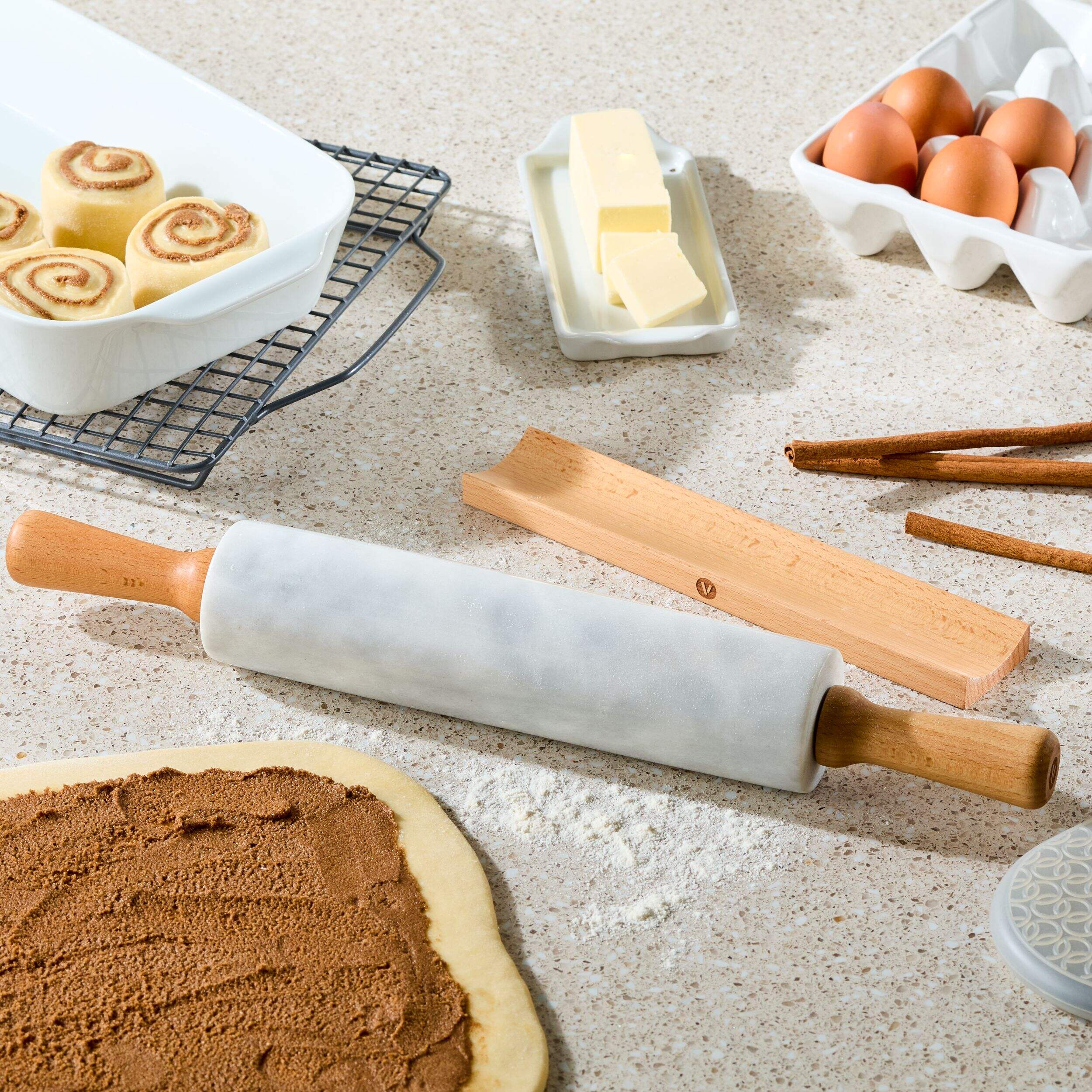 The Vida by PADERNO Durable Rolling Pin with Holder is designed to handle the toughest dough with ease. Crafted from durable marble, this rolling pin ensures a smooth and efficient rolling experience. The natural beechwood holder not only provides a secure storage solution but also adds a touch of elegance to your kitchen.