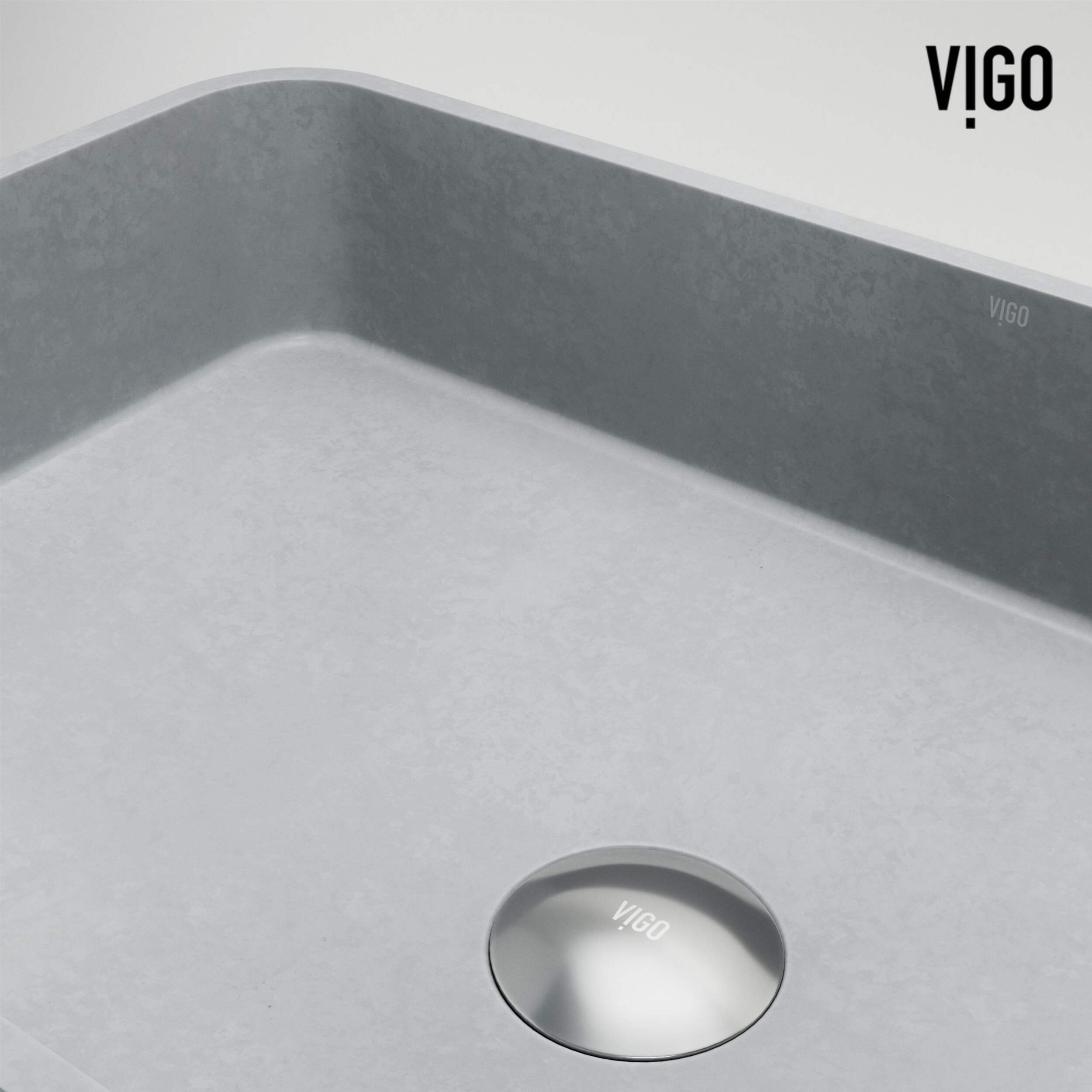 Luxurious ash grey surface of the vessel sink adds elegance to the bathroom to creating a high-end, industrial look