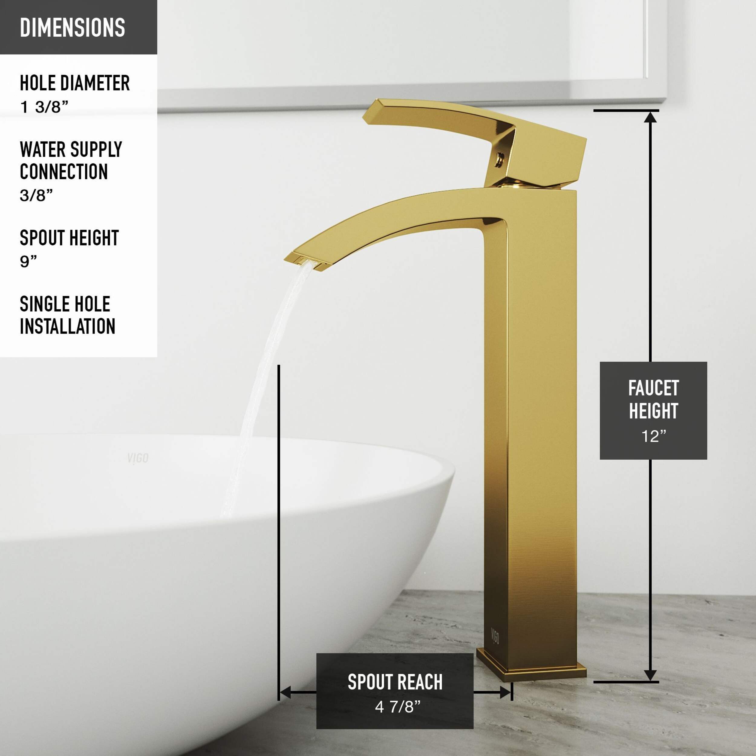 Tall, angular, and artistic, the VIGO Duris Vessel Bathroom Faucet is an eye-catching way to update any modern bathroom. It is made from solid brass construction for durability, which is further reinforced by the sedal ceramic disc cartridge to prevent dripping. This faucet operates both the water volume and temperature controls by use of a single lever. With a rust-resistant finish and optional matching pop-up drain available for separate purchase, the Duris is just what you’ve been looking for.