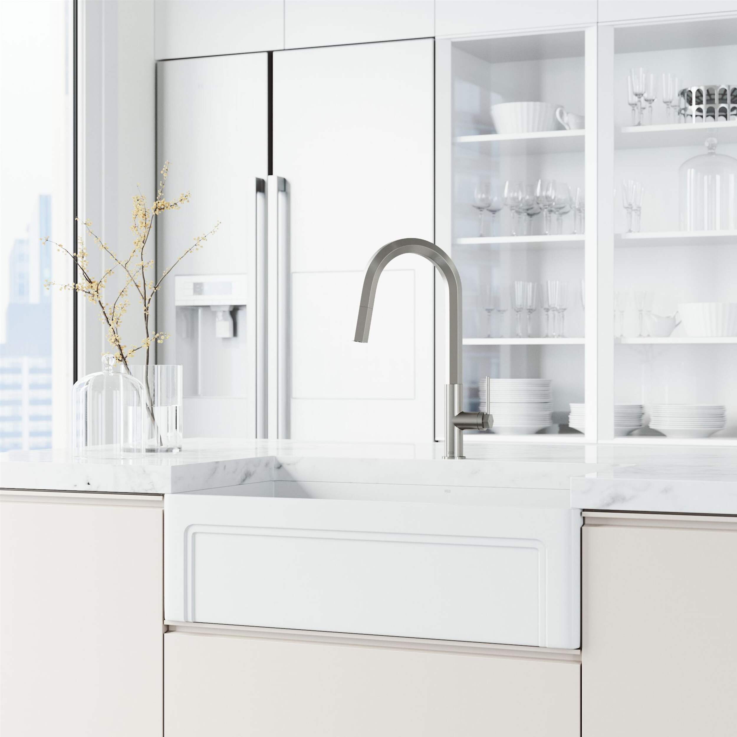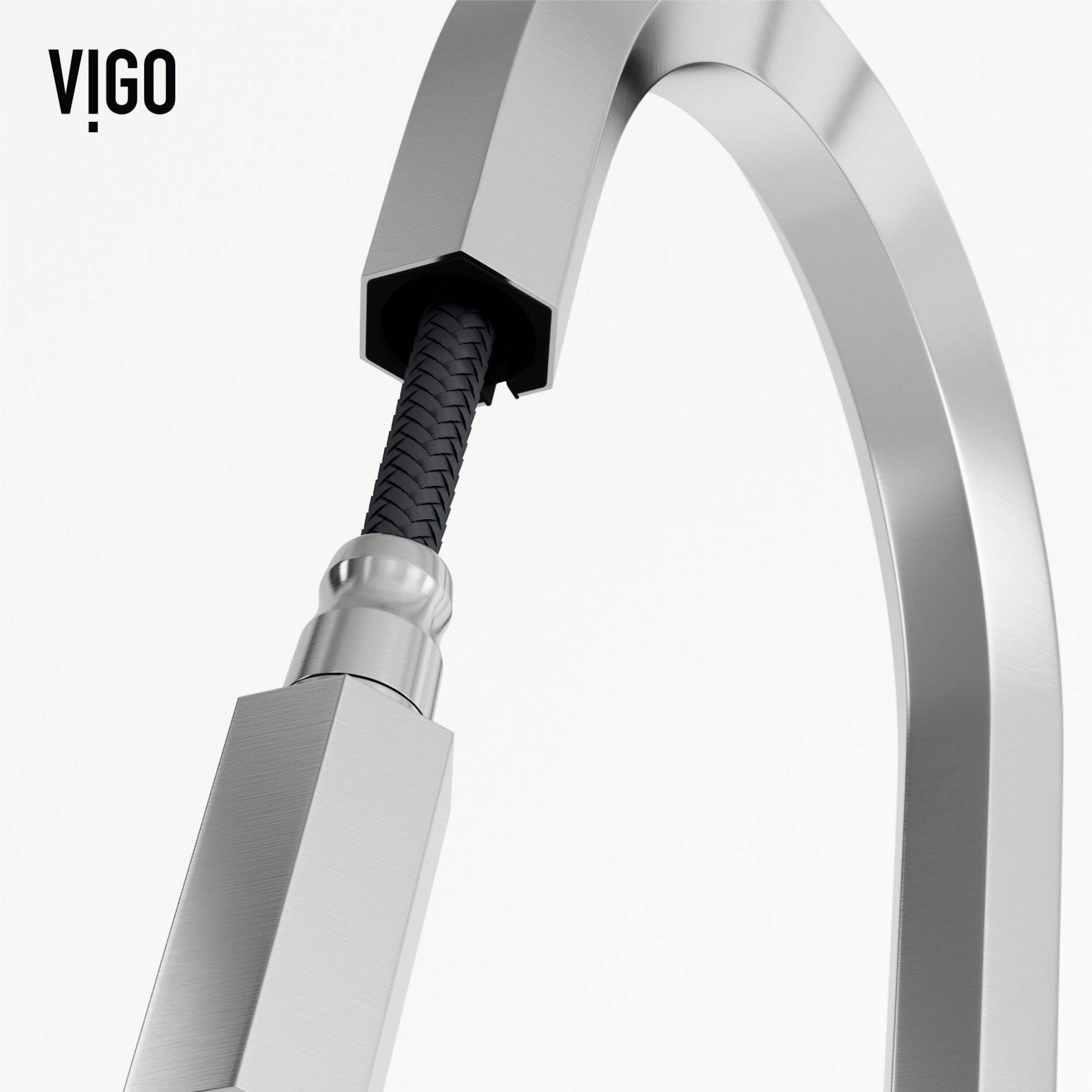 The VIGO Hart Hexad Pull-Down Kitchen Faucet in Stainless Steel brings a bold, industrial style to your kitchen while offering top-notch functionality. Featuring a unique hexagonal design and a pull-down spray head with dual spray modes, this faucet is ideal for tackling various kitchen tasks with ease. With a high-arc spout and durable construction, the VIGO Hart Hexad faucet is the perfect blend of modern design and practical features for any contemporary kitchen.