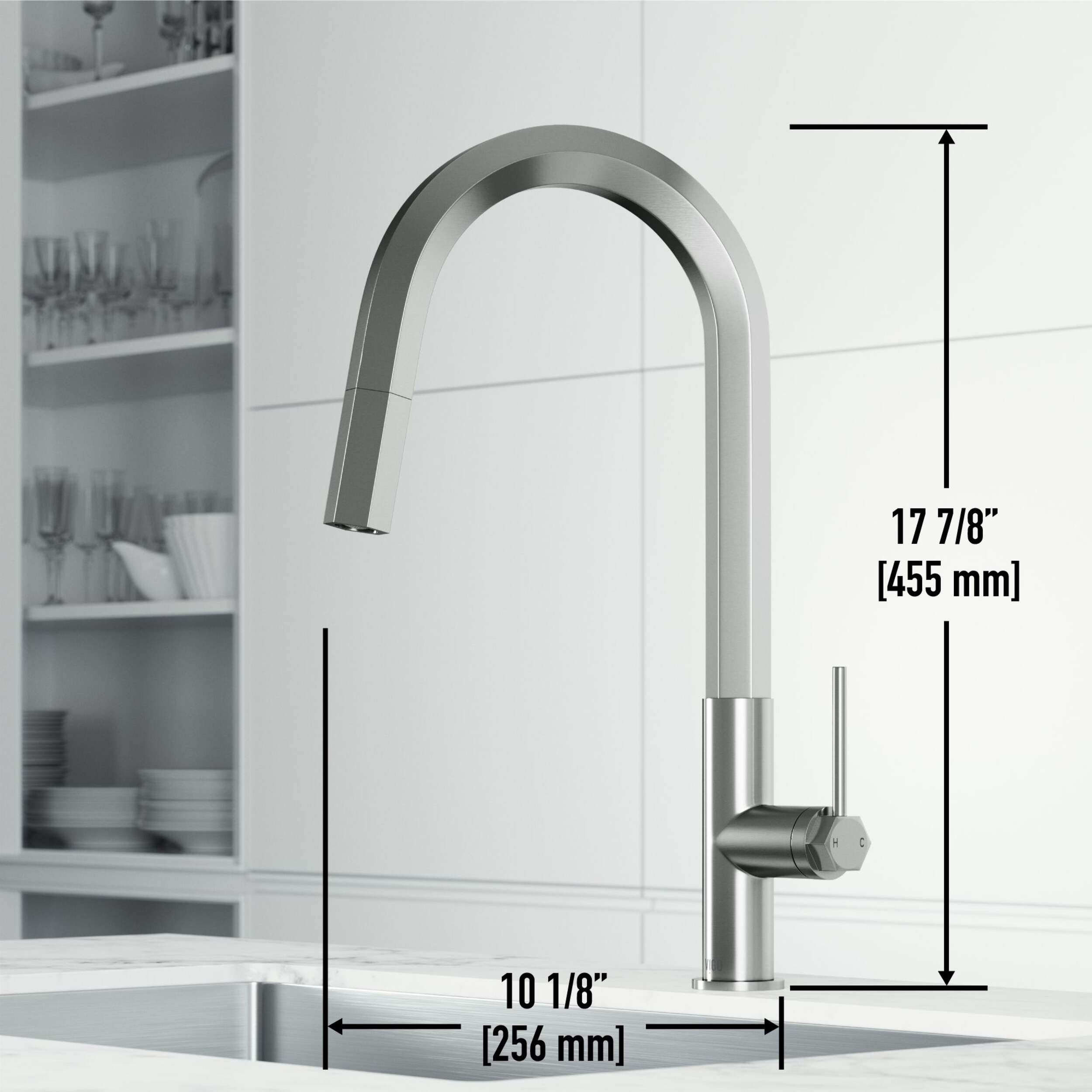 17.875 in. H, extendable hose up to 30 in., 360° swivel spout