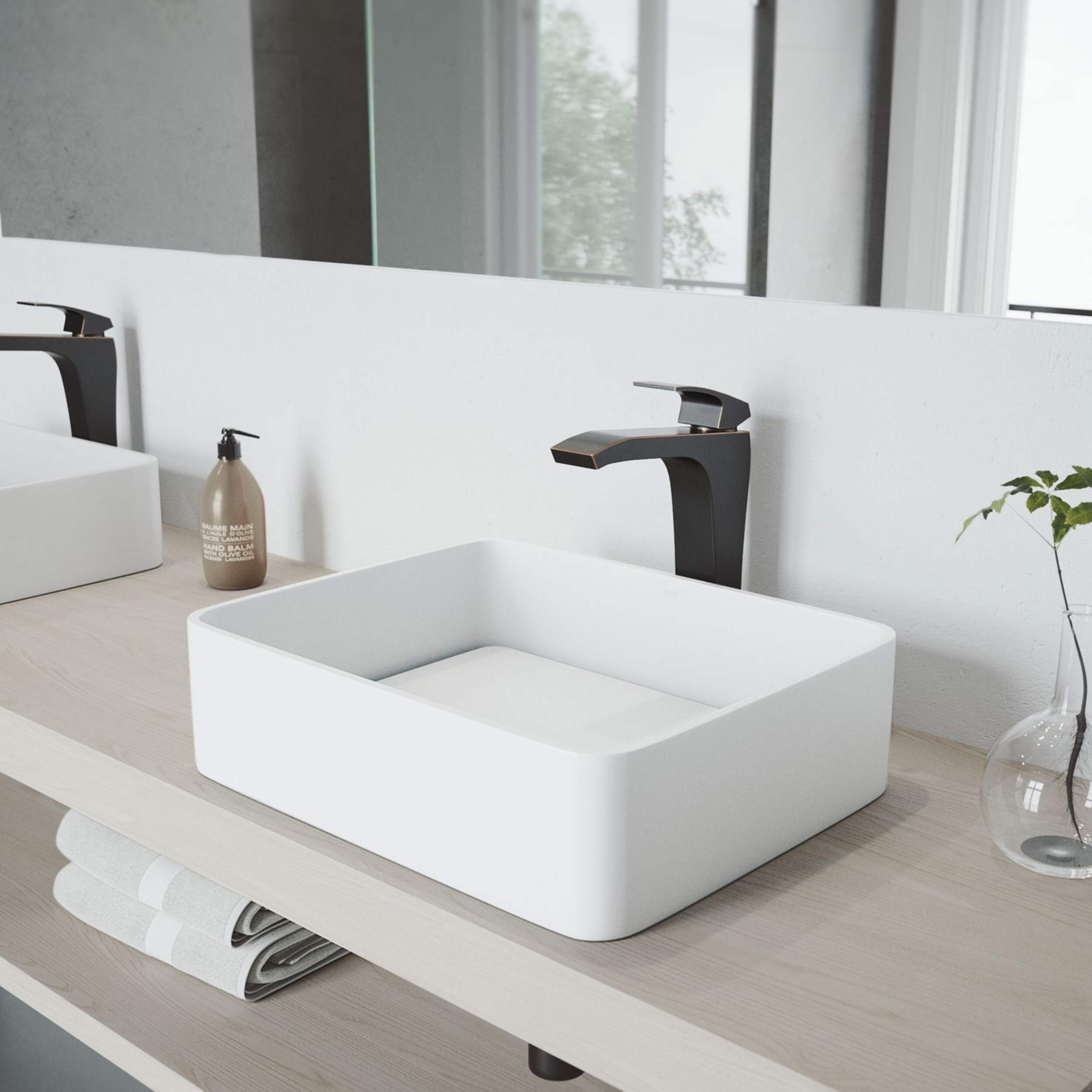 The matte white surface of the vessel sink adds elegance to the bathroom to enhances the overall luxury of the space