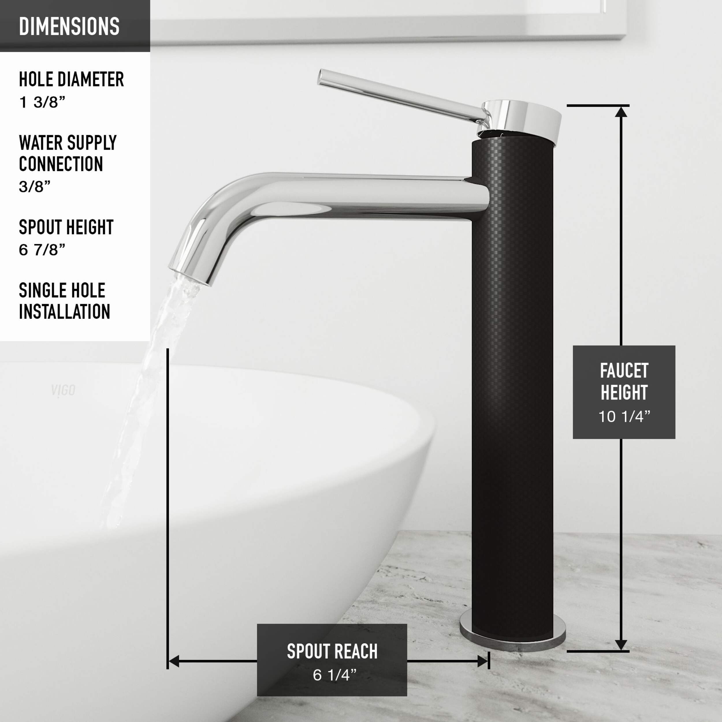 VIGO Lexington Vessel Bathroom Faucet is made of revolutionary cFiber© carbon fiber material (previously used to make airplanes and automobiles) to provide exceptional durability and strength