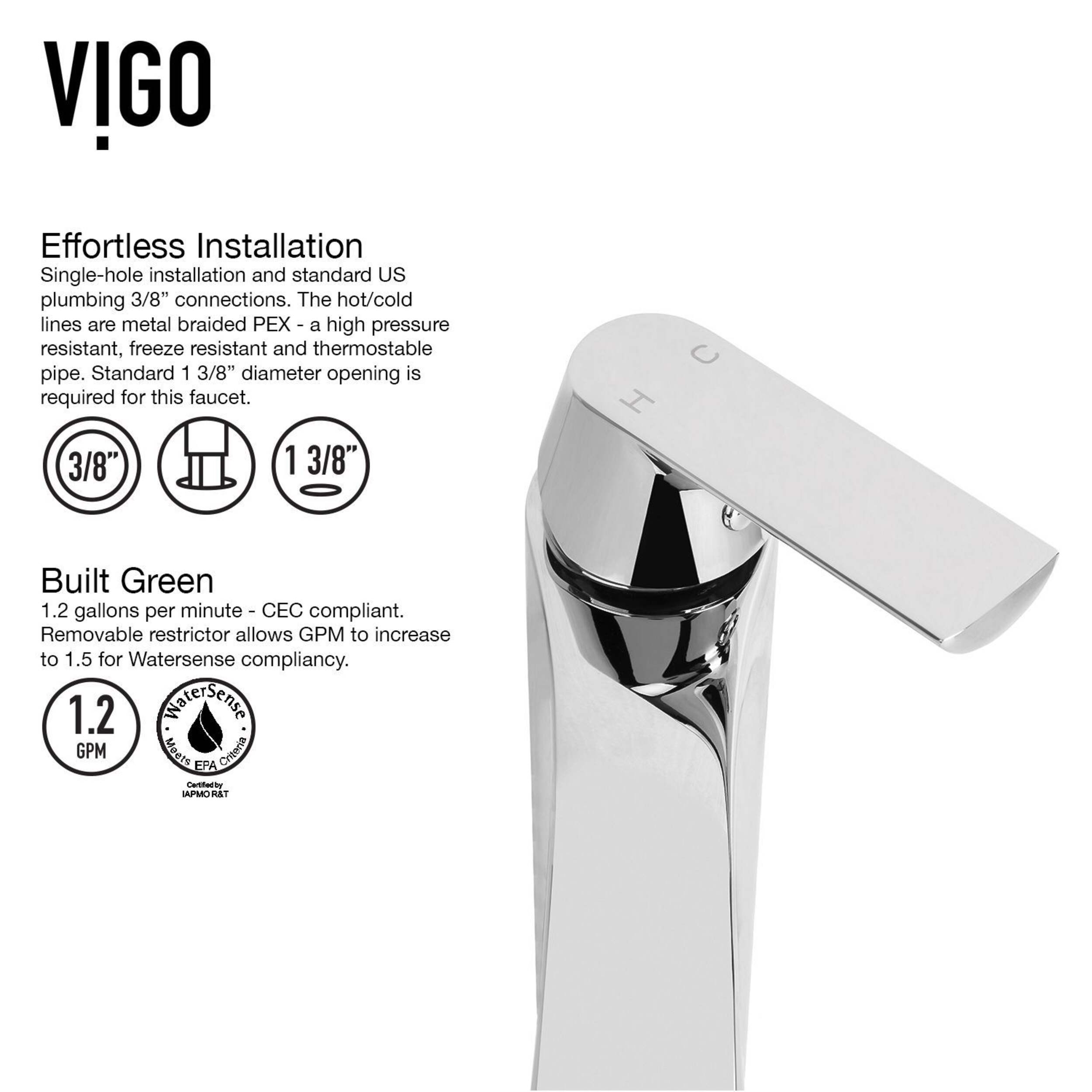 cUPC, NSF-61, AB1953 and WaterSense™ certified by IAPMO