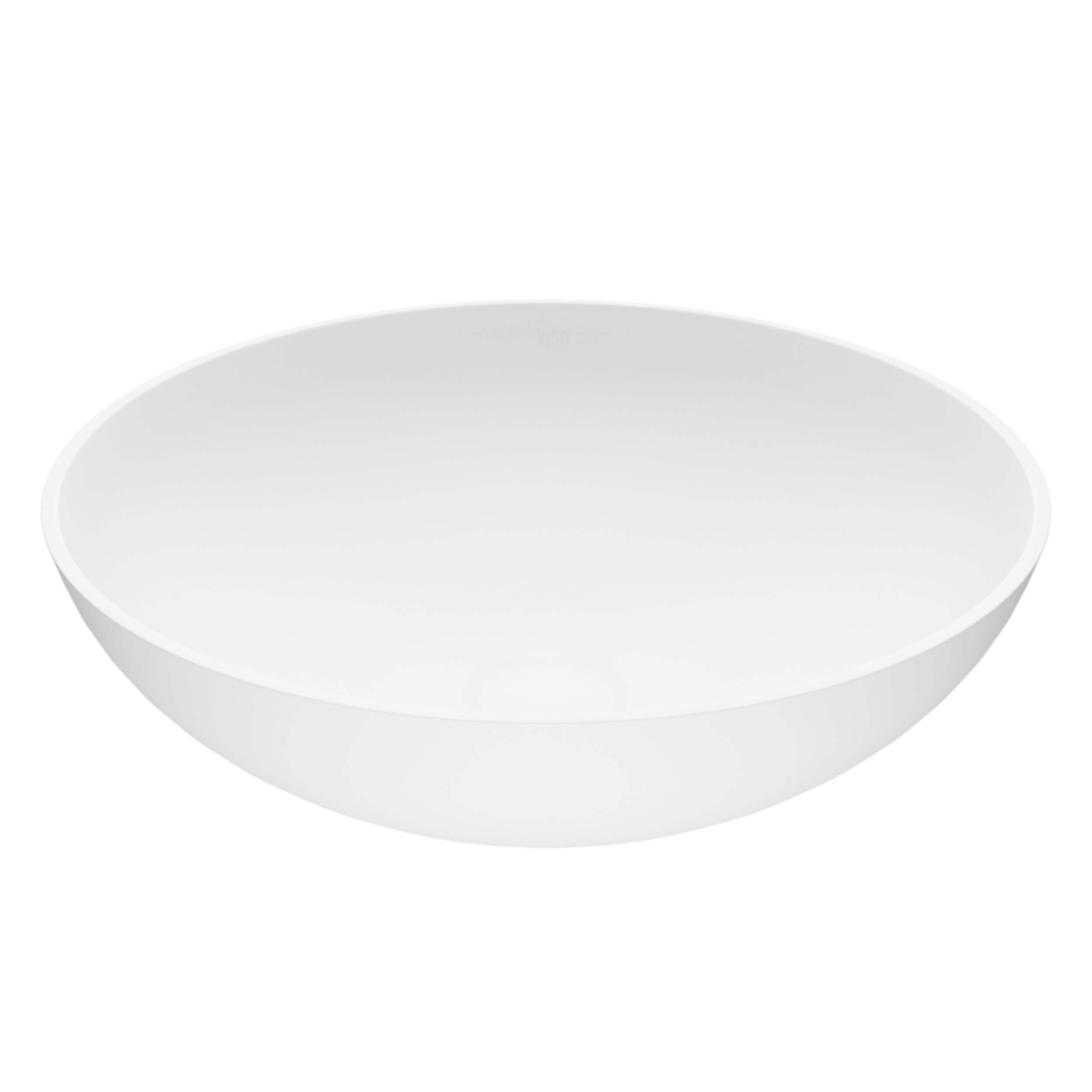 VIGO Lotus Round Vessel Bathroom Sink features a solid core composite that is smooth, non-porous, and naturally hygienic, expertly resisting scratches, fading, and impact