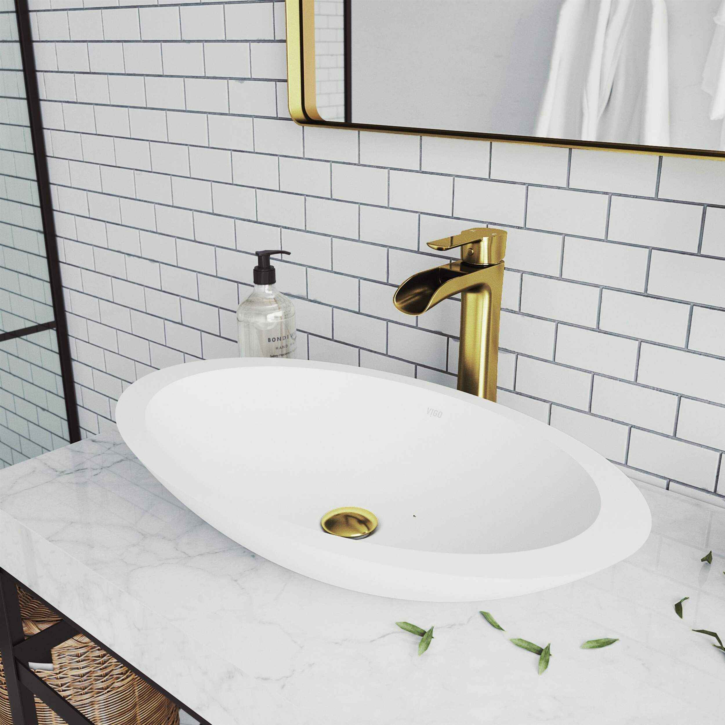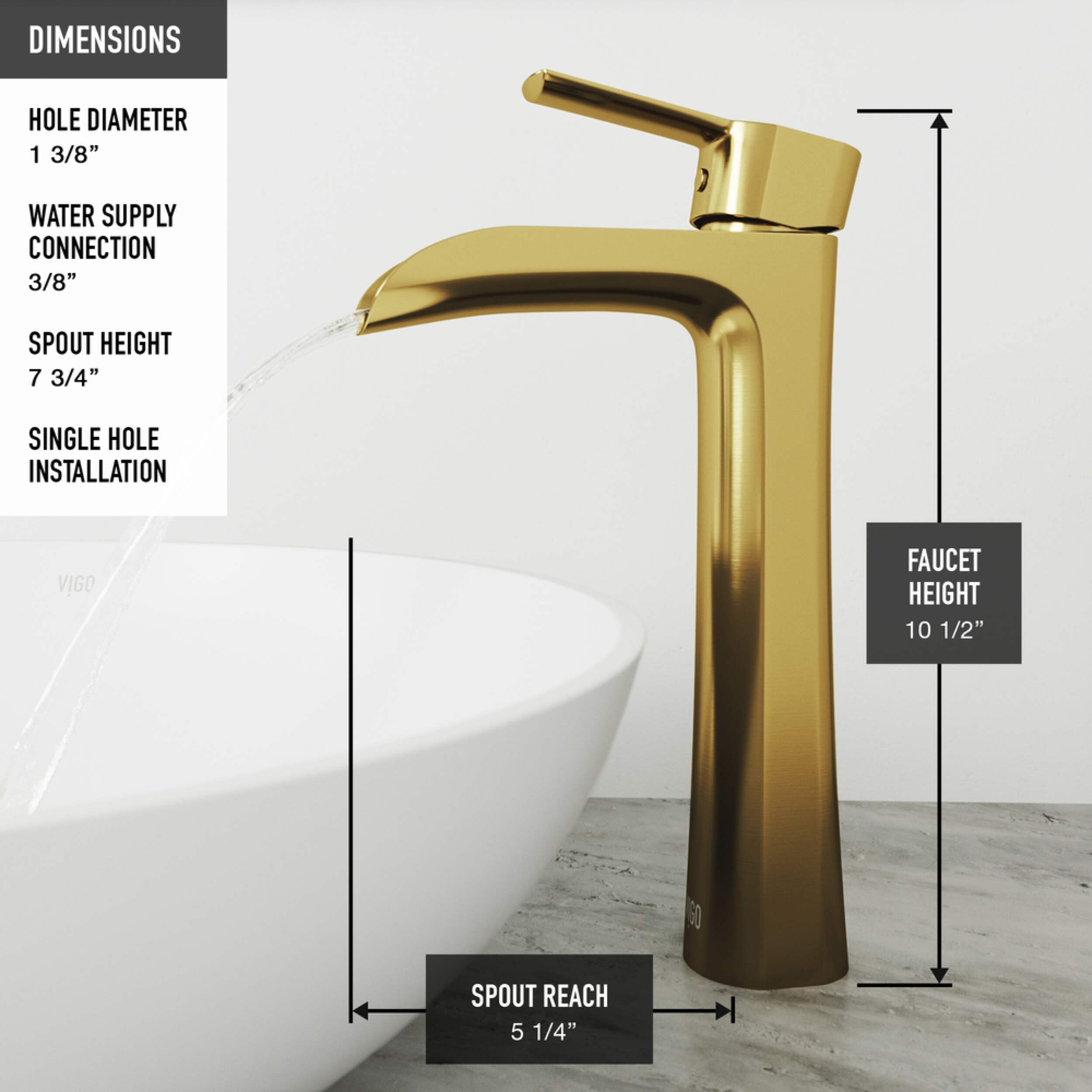 The VIGO Niko Vessel Bathroom Faucet brings graceful elegance to any bathroom. Made from solid brass and built with a sleek trough-style spout, the Niko is as durable and functional as it is beautiful. It operates with a single lever to control the water volume and temperature controls. The faucet features a premium, rust-resistant finish for long-lasting use. The sedal ceramic disc cartridge expertly fights leaks and drips, keeping the faucet resilient for the long haul. With the option to purchase a matching finish pop-up drain, you will have a complete set in no time.