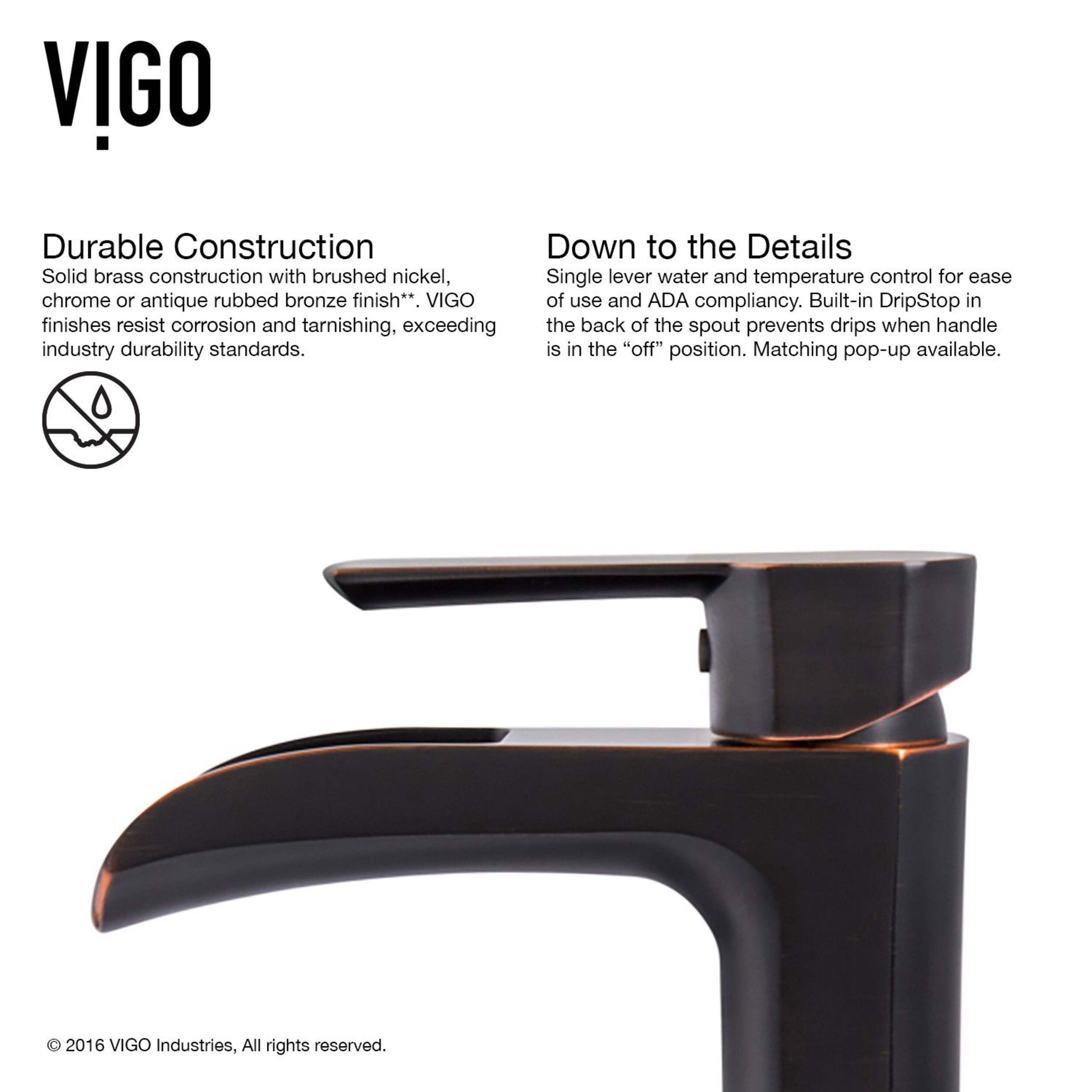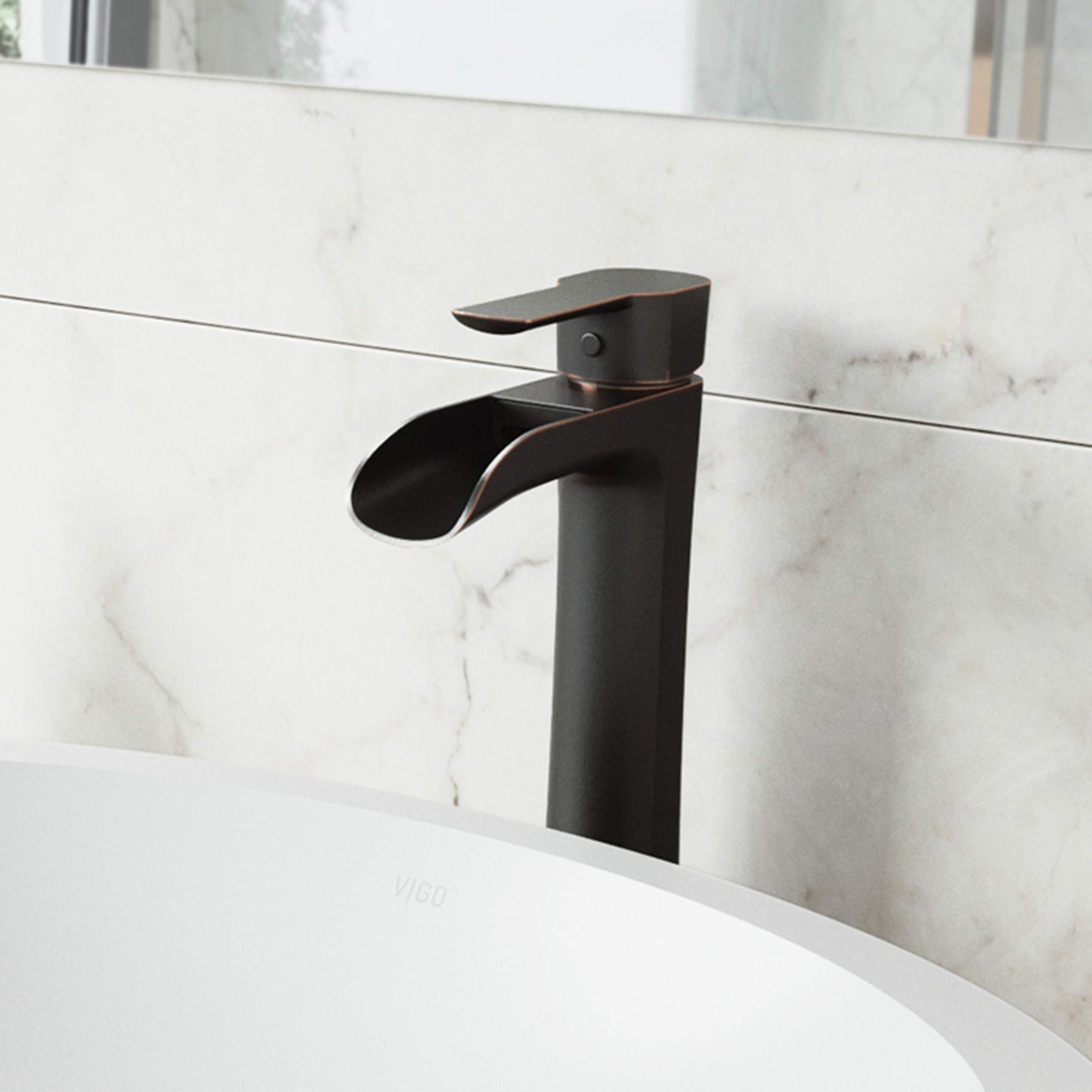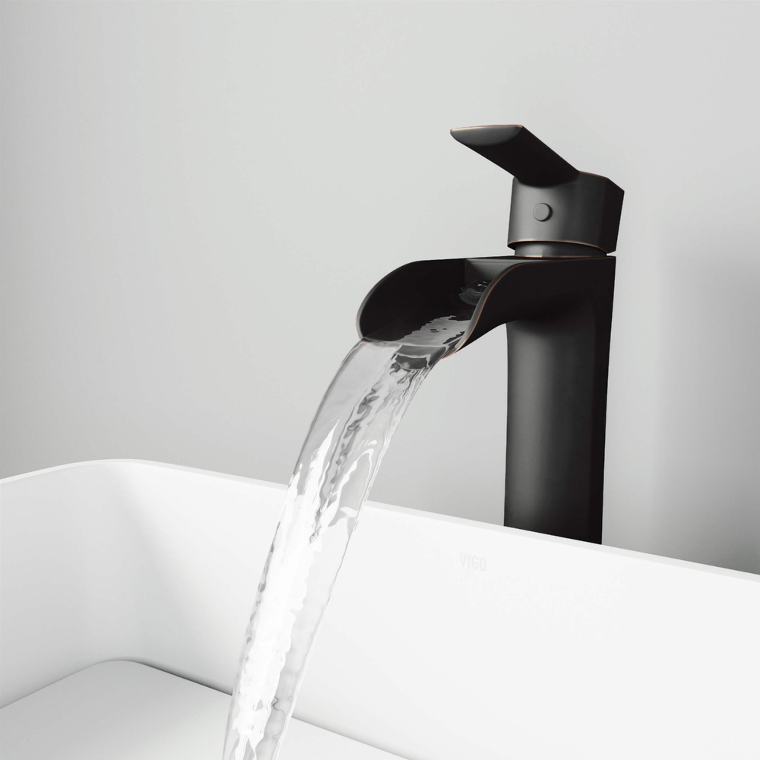 With a rich antique rubbed bronze finish and an easy-to-clean spout, the VIGO Niko Vessel Bathroom Faucet brings a graceful elegance to your bathroom. The uniquely shaped spout creates a relaxing waterfall effect as water cascades into your vessel sink. The quality components, including a leak-proof sedal ceramic disc cartridge, let the faucet add just the right amount of luxury to your bathroom.