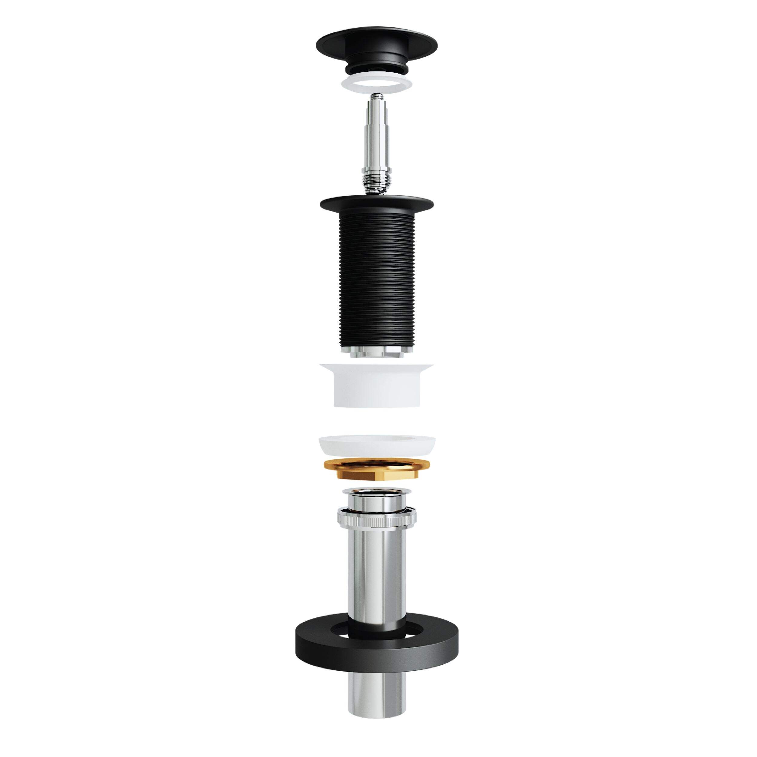Update your bathroom sink with a VIGO Pop-up Drain Assembly and Mounting Ring. This advanced pop-up is built specifically for VIGO's vessel sinks and comes with a mounting ring that lifts the vessel sink off the countertop for easier cleaning. Made of solid brass construction with a matte black finish, this pop-up drain is built to last.
