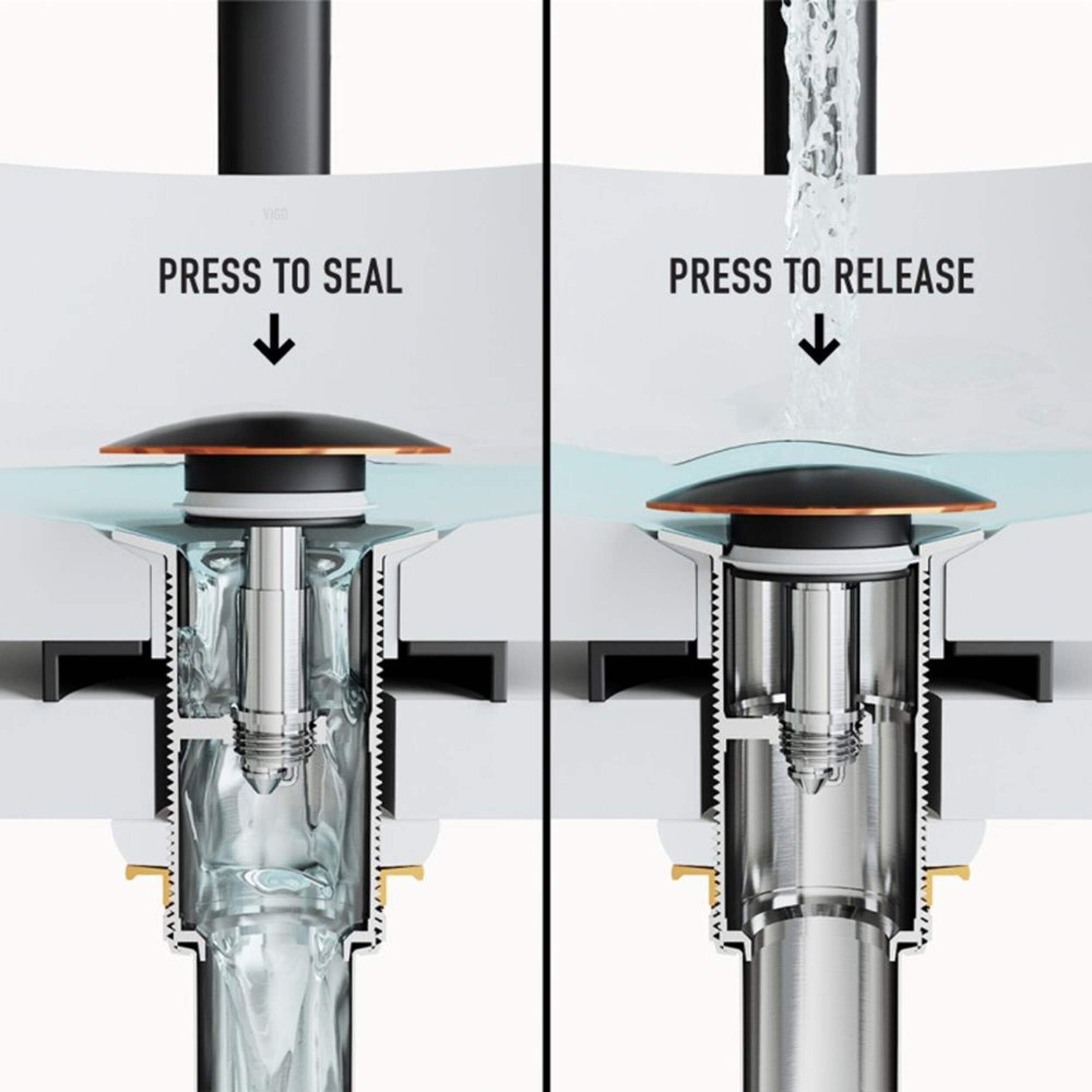 VIGO Vessel Bathroom Sink Pop-Up Drain is designed for use with vessel mount sinks without overflow