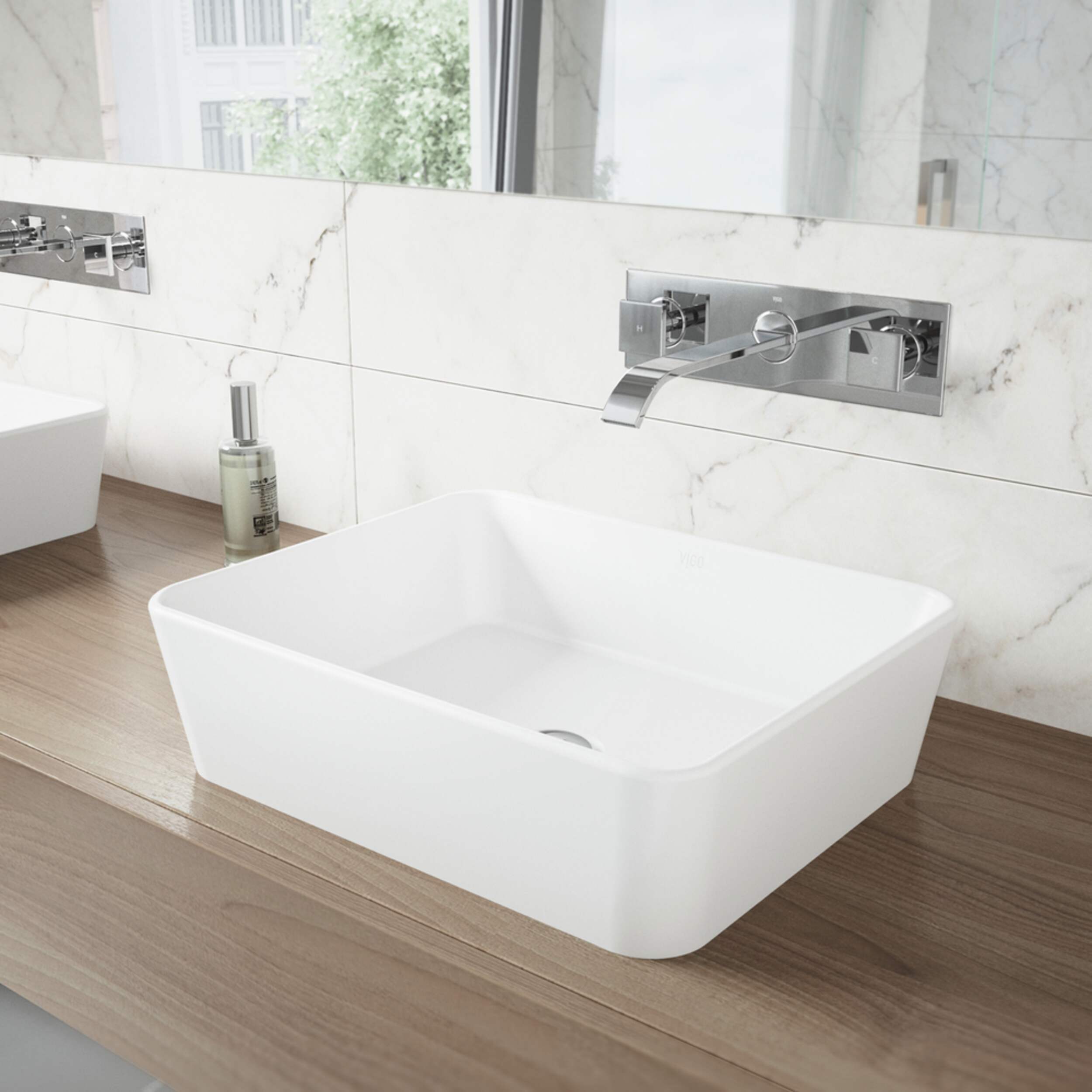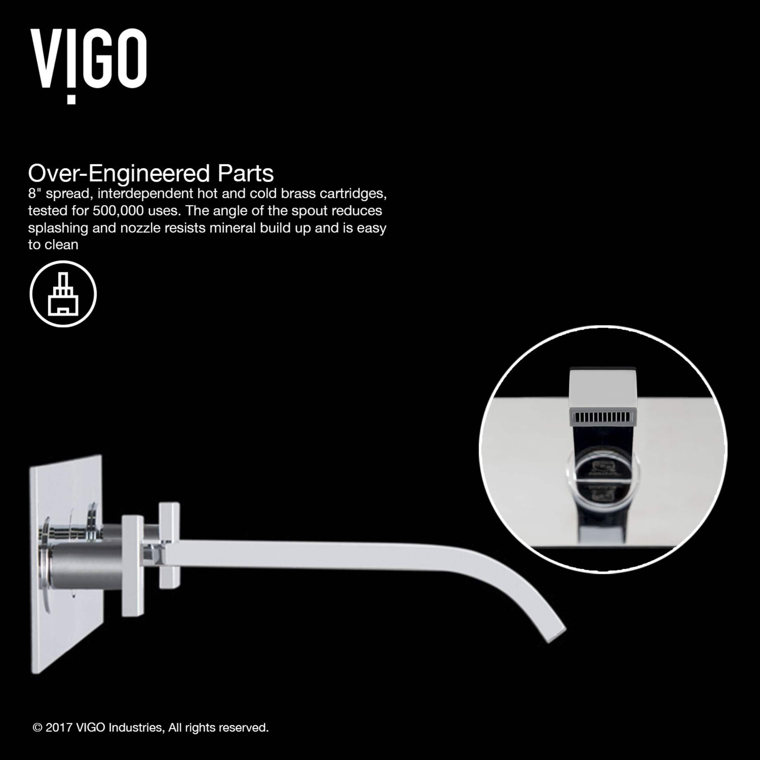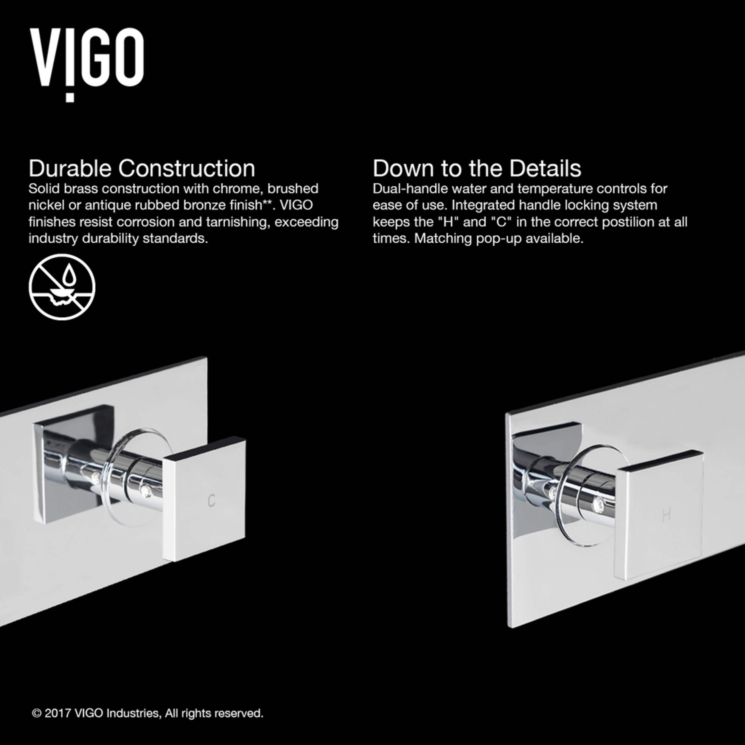 Pure and simple geometry, the VIGO Titus Wall Mount Bathroom Faucet is traditionally-designed for the modern homeowner. Crafted from solid brass and outfitted in 7 layers of pristine finish, the Titus make a dramatic and durable addition to any bathroom. With easy-to-use hot and cold controls and a matching finish pop up drain available for separate purchase, the Titus is the bathroom faucet solution you've been looking for.