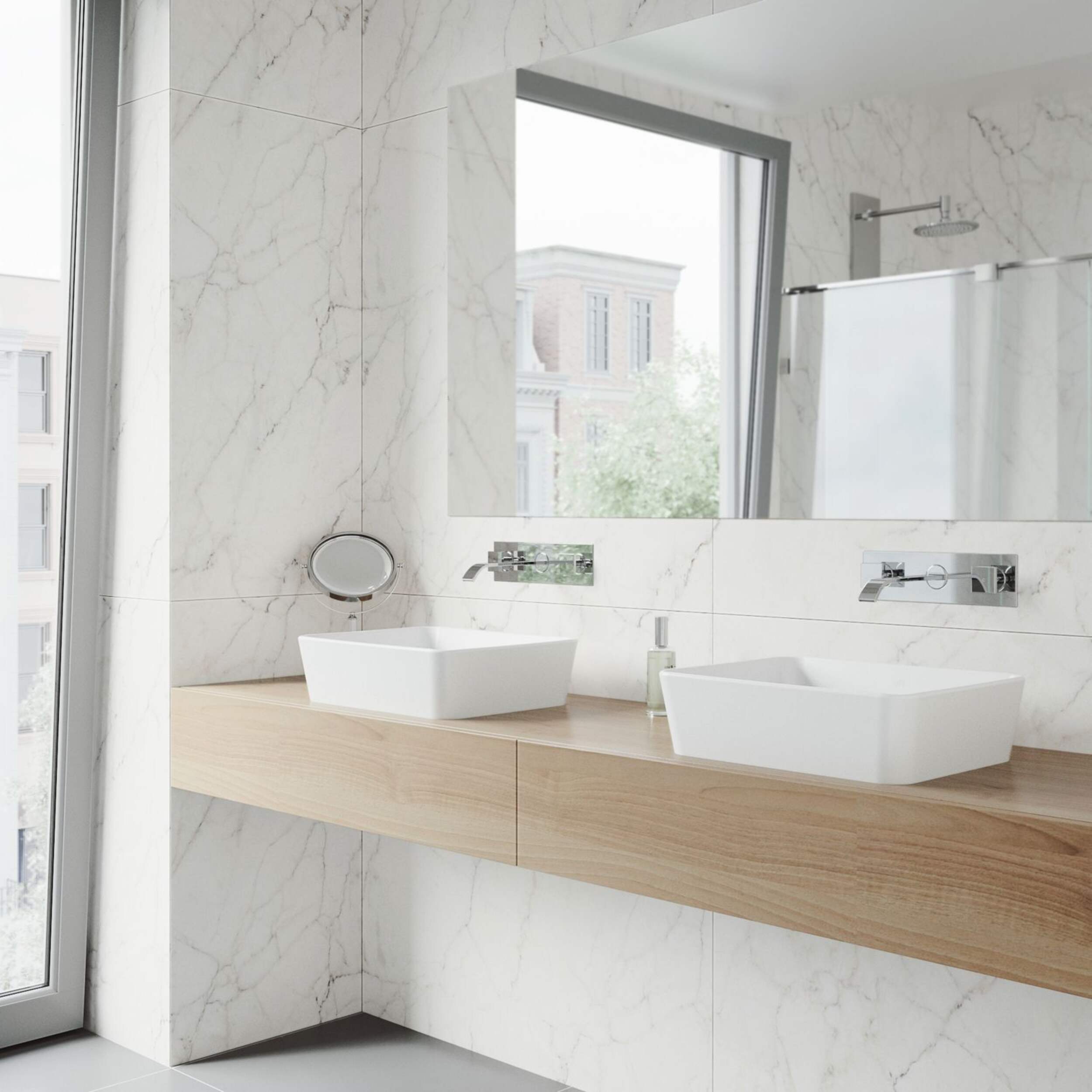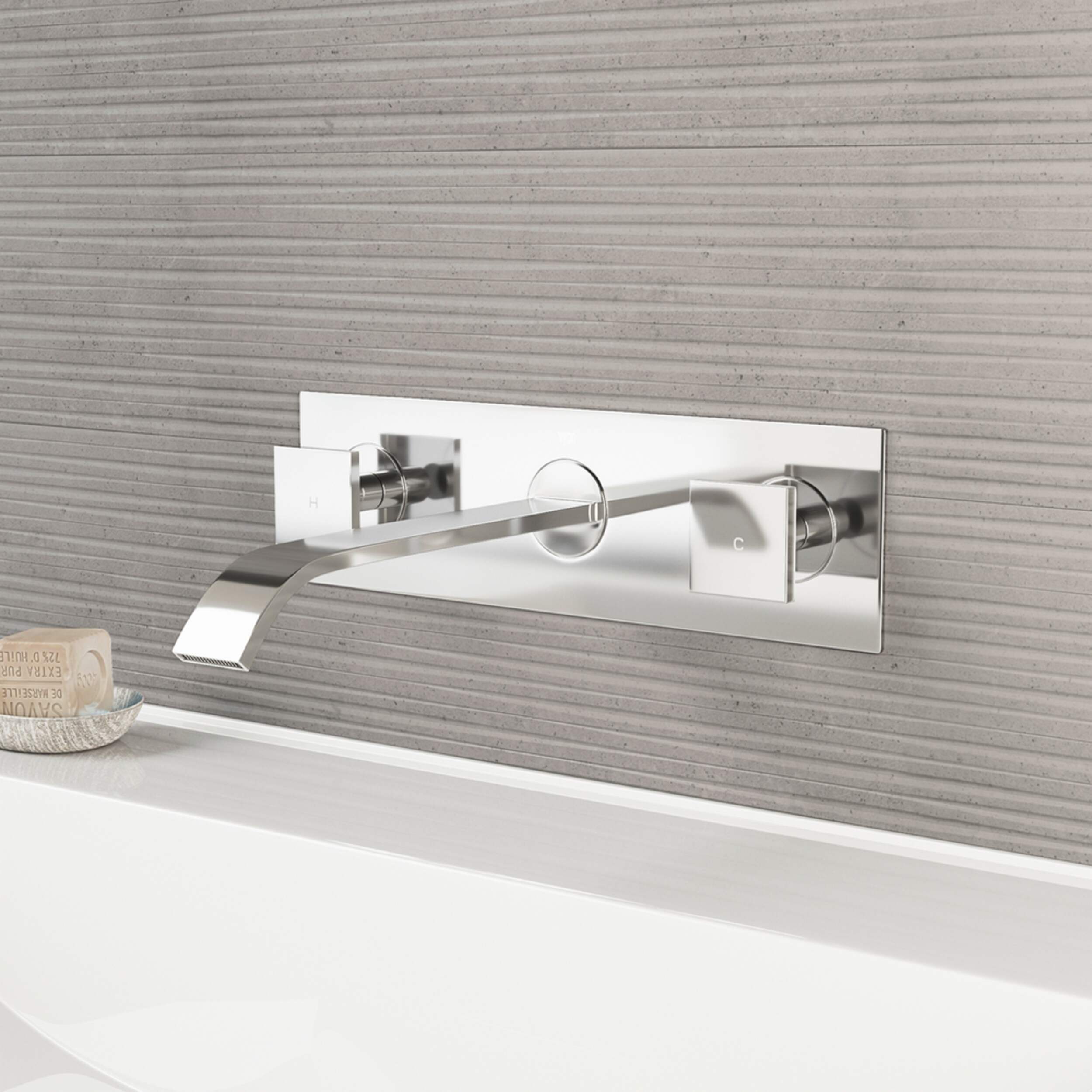 Easily install the dual-handle wall-mount on the wall above your vessel sink
