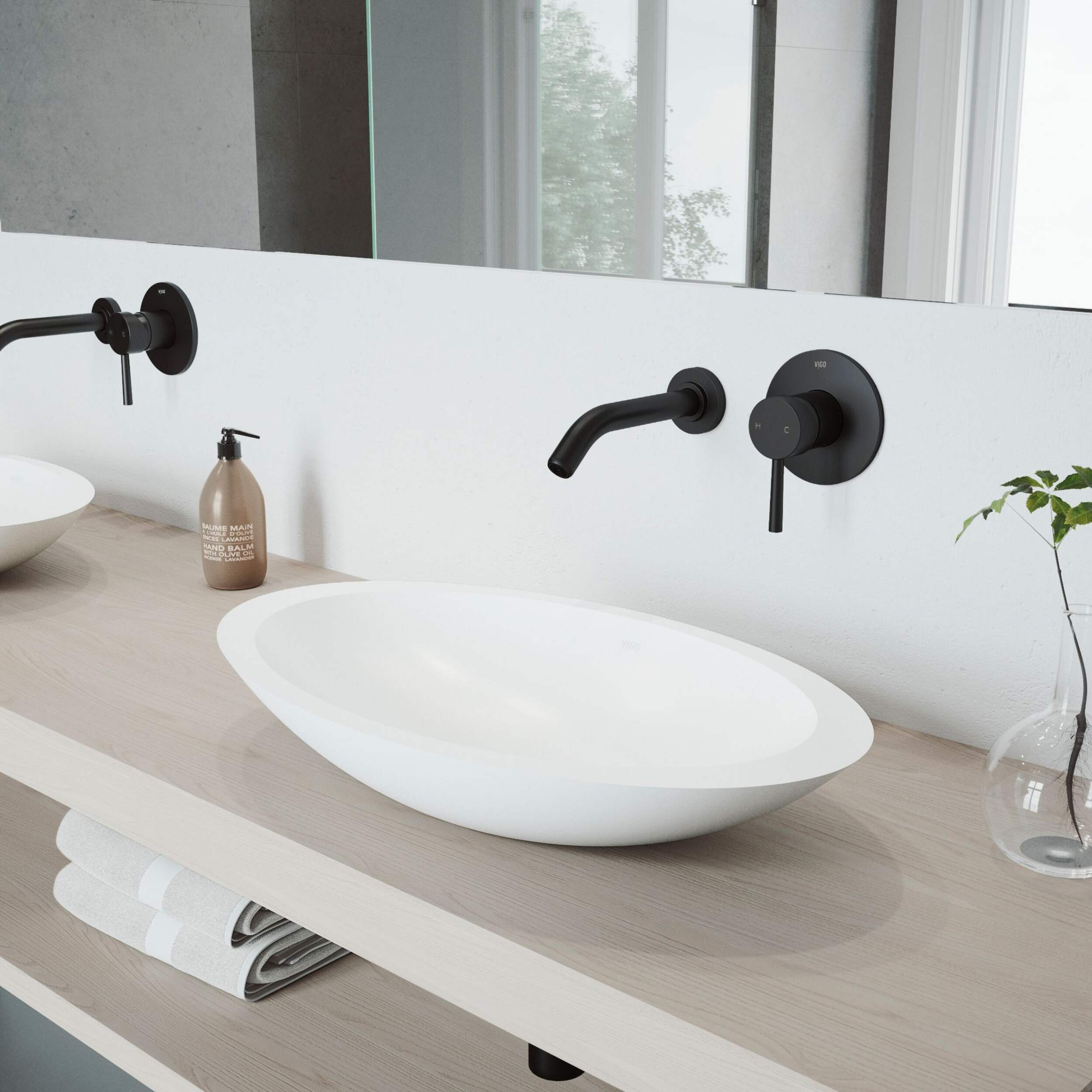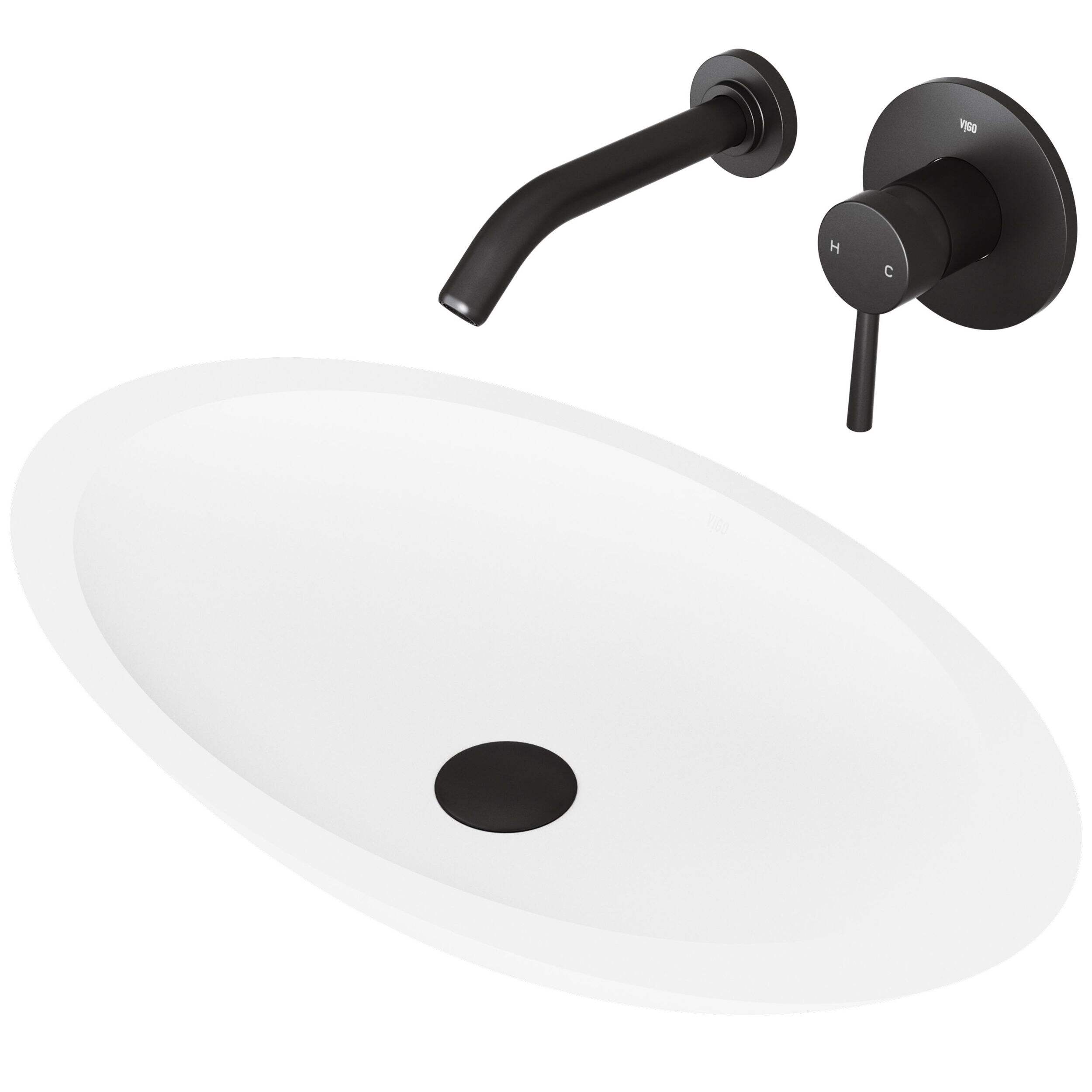 This complete Wisteria bathroom sink set includes a stunning oval sink, a 5-in H Olus 1-hole wall mounted bathroom faucet and a matching pop-up drain for compatibility and consistency in design