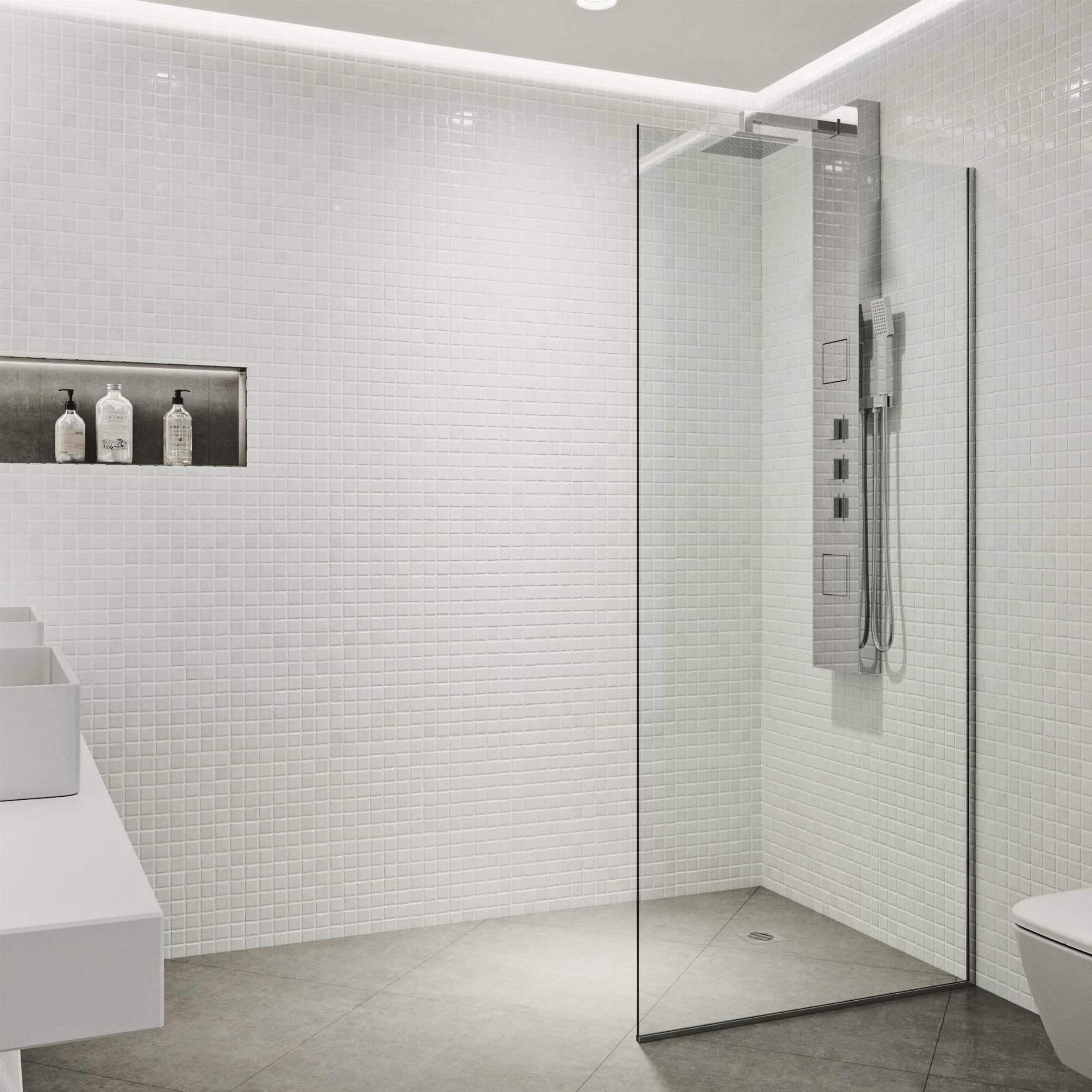 This frameless shower screen creates a relaxing walk-in shower experience. The vertical and bottom structural rails anchor securely to the wall and reinforce stability. The spot-free clear tempered glass resists dangerous breakage while full-length seals keep water in between the glass and rails. The glass treatment makes it easy to clean and maintain. The premium chrome-plated hardware resists corrosion and tarnishing for a timeless, elegant look that elevates any bathroom. All necessary mounting hardware and straightforward instructions allow for an easy one-day installation.