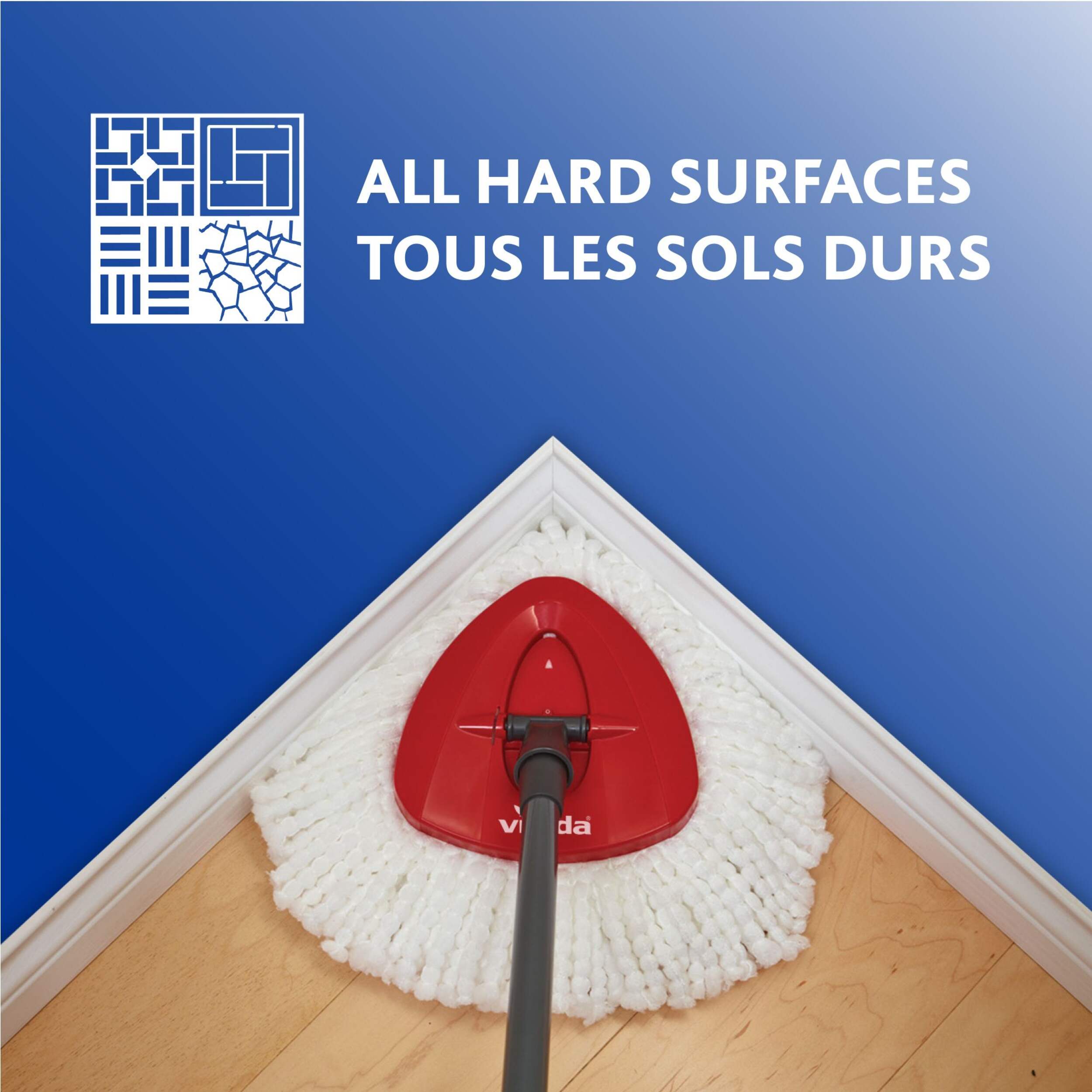 TRIANGLE SHAPE: Triangular mop head designed to clean into corners, and under furniture.