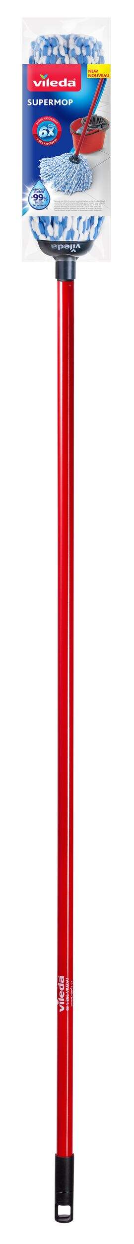 The Vileda® SuperMop, your ultimate solution for a pristine clean without the need for harsh chemicals. Designed with 100% absorbent microfibre, this mop eliminates over 99% of bacteria using only water*, ensuring a hygienic environment for your home. It effortlessly holds up to 6 times its weight in water, leaving floors impeccably clean and gleaming. For an even easier clean, pair it with the QuickWring™ bucket to complete your cleaning arsenal.