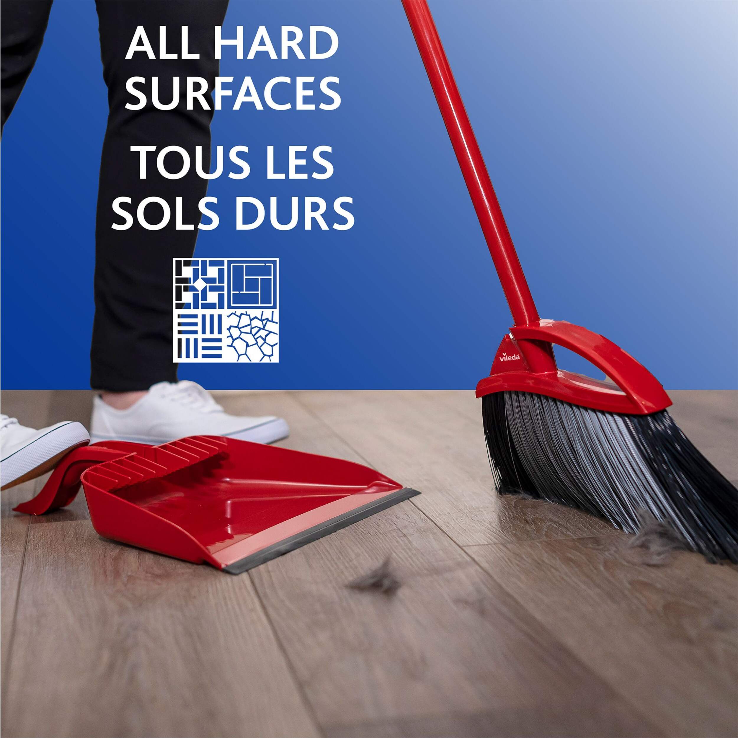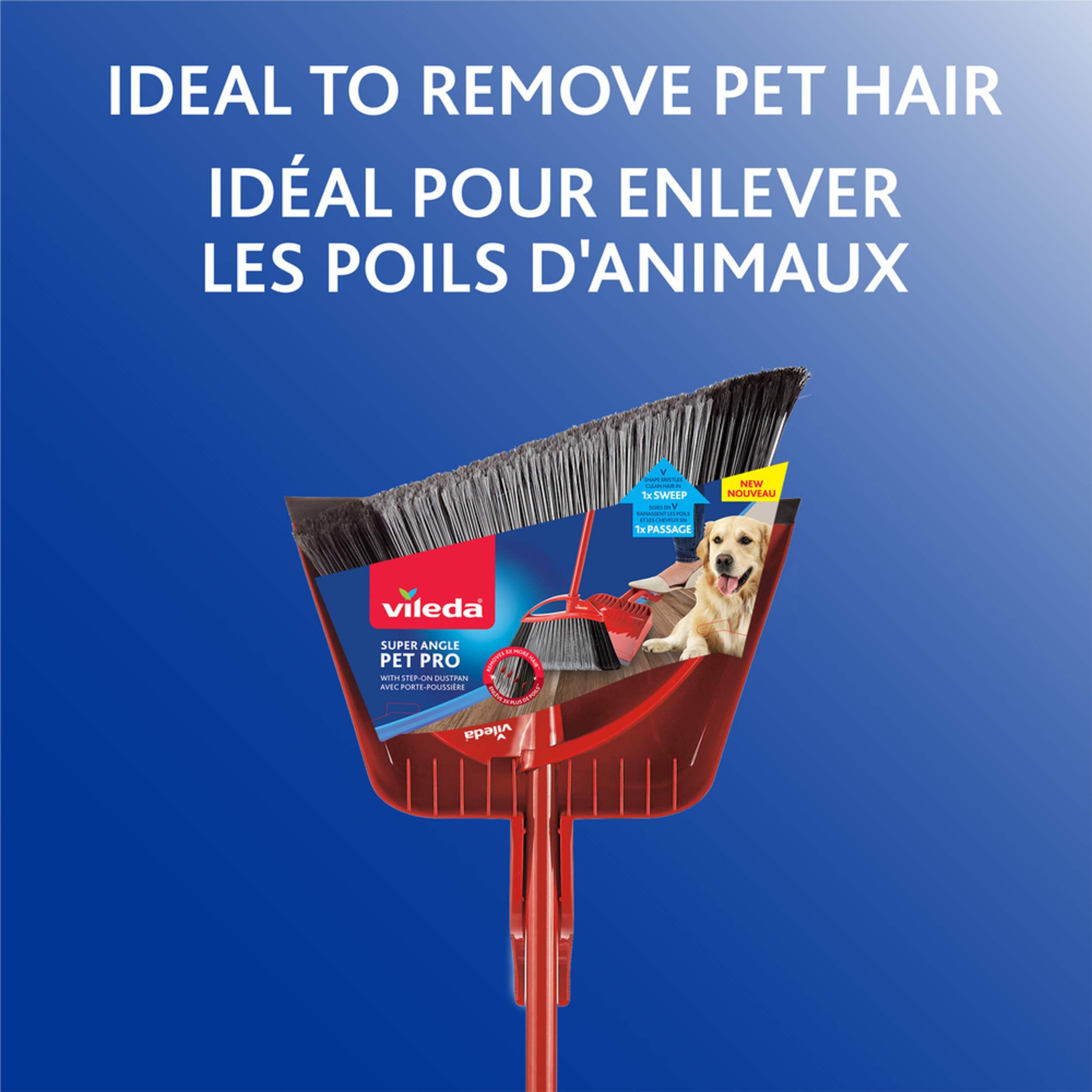 Vileda Super Angle Pet Pro Broom features unique and patented V-shape bristles that make sweeping paw-sitively easy