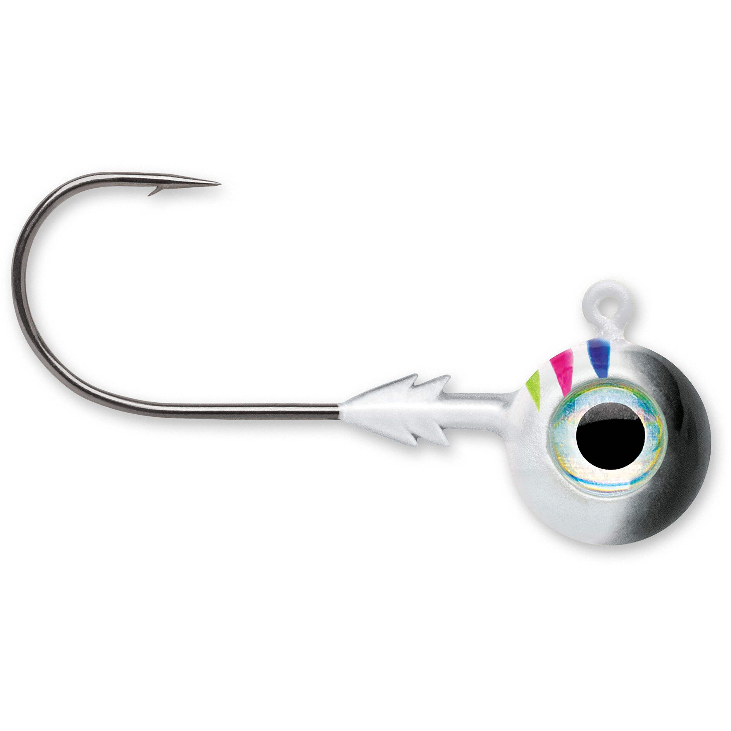 The VMC Tungsten Moon Eye Jig, Glow Black Wonderbread, 1/8-oz, is designed to deliver exceptional performance for anglers. Its tungsten round ball head provides the best return on forward-facing sonar, ensuring precise and effective fishing. The broadhead keeper guarantees straight rigging and prevents bulging with any plastics, while the realistic 3D holographic eyes add an enticing visual appeal to attract fish. Perfect for both freshwater and saltwater fishing, this jig offers reliability and versatility, making it a valuable addition to any tackle box.