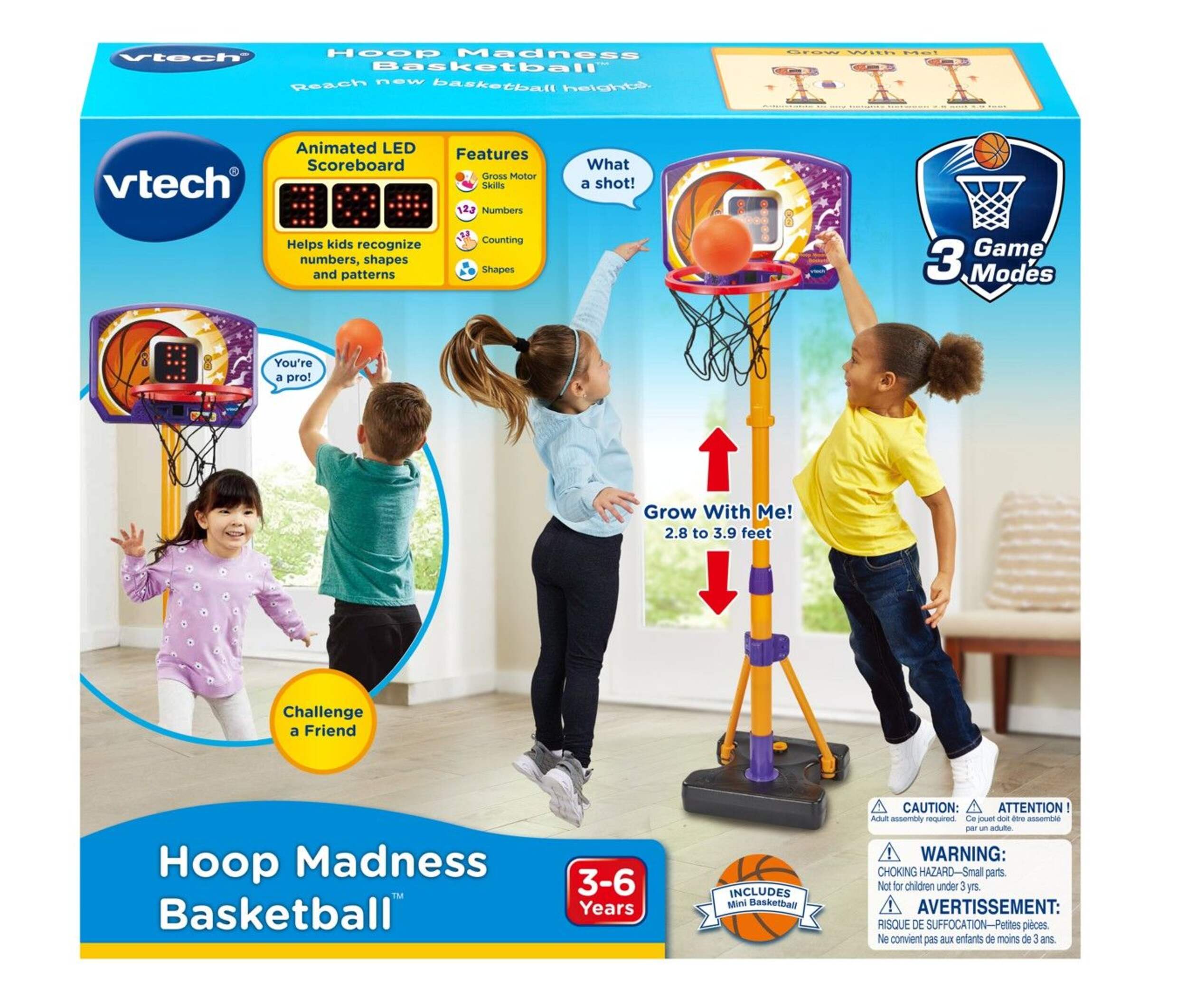 Practice trick shots, shoot when the correct shape, number or object appears and make as many baskets as possible before the buzzer sounds in three challenging games