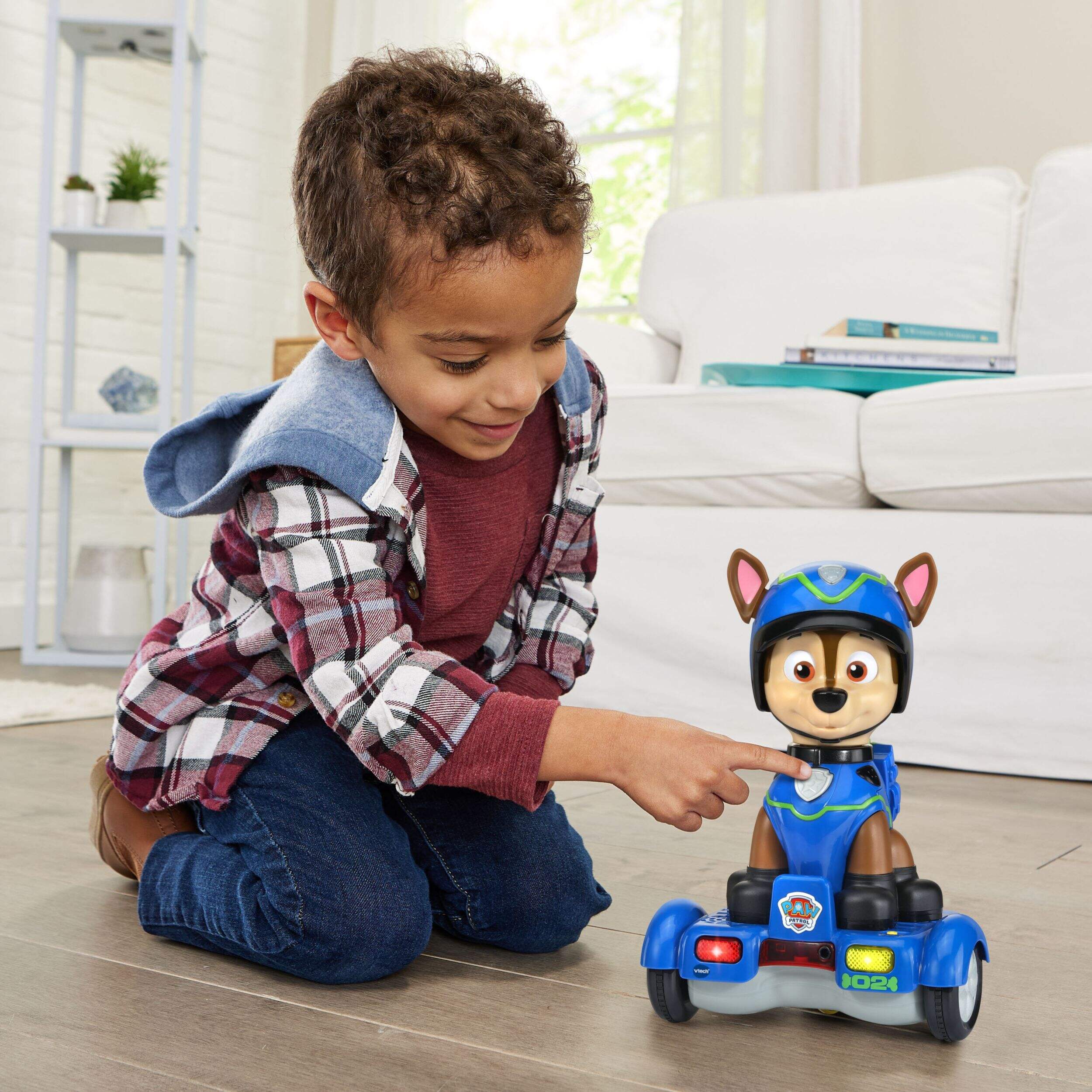 Spy Chase is on the case and can roll forward, backward and avoid obstacles while turning his head