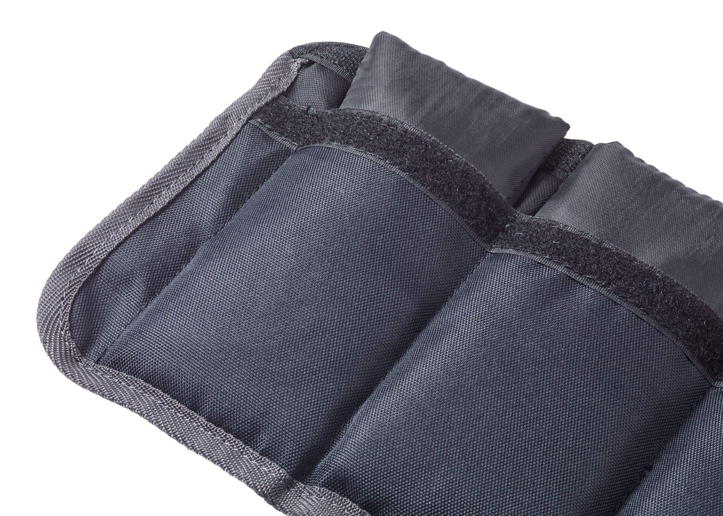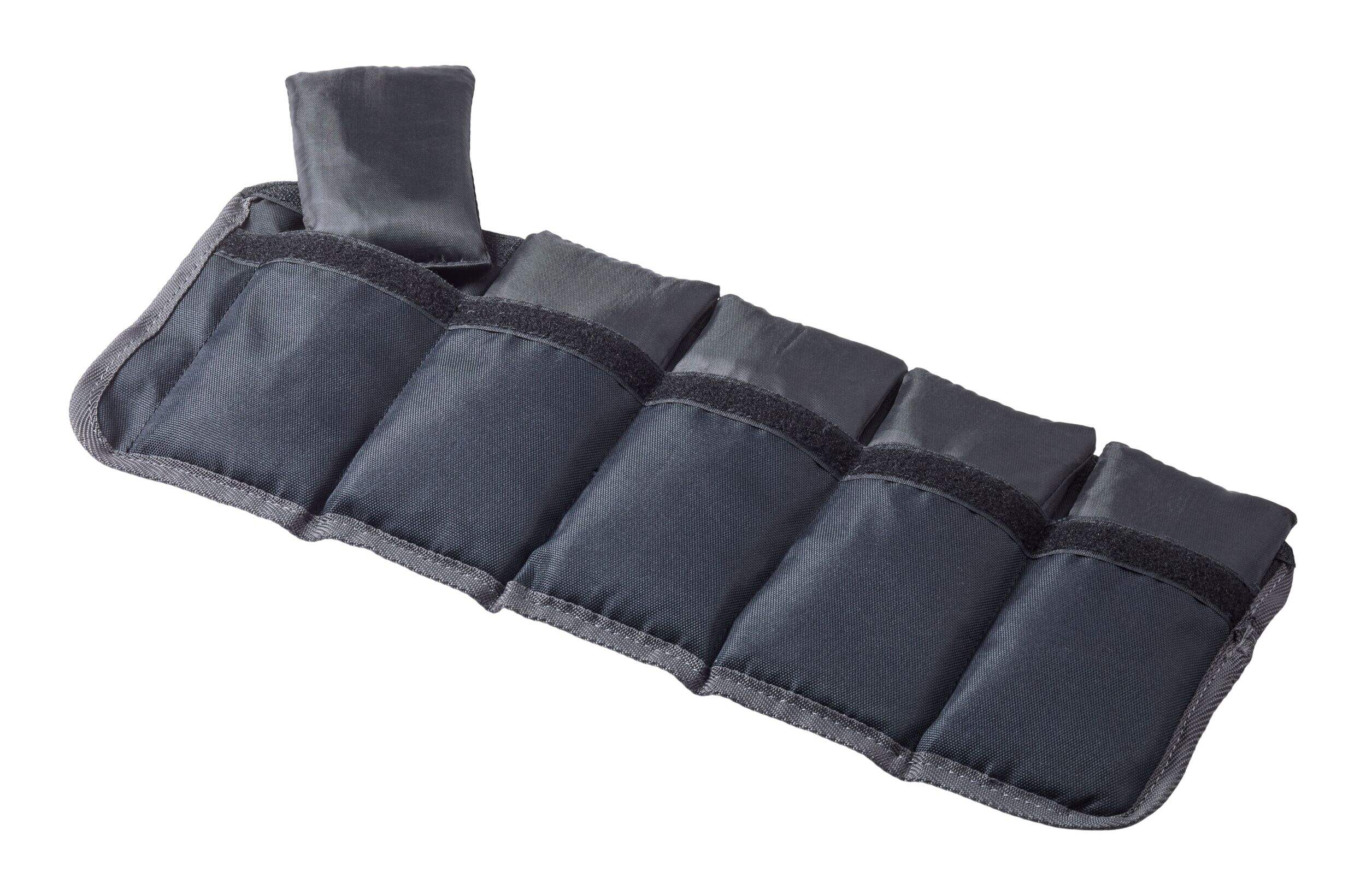 Individual 1 lb (0.45 kg) nylon weights slip securely into pockets, customizing your workout