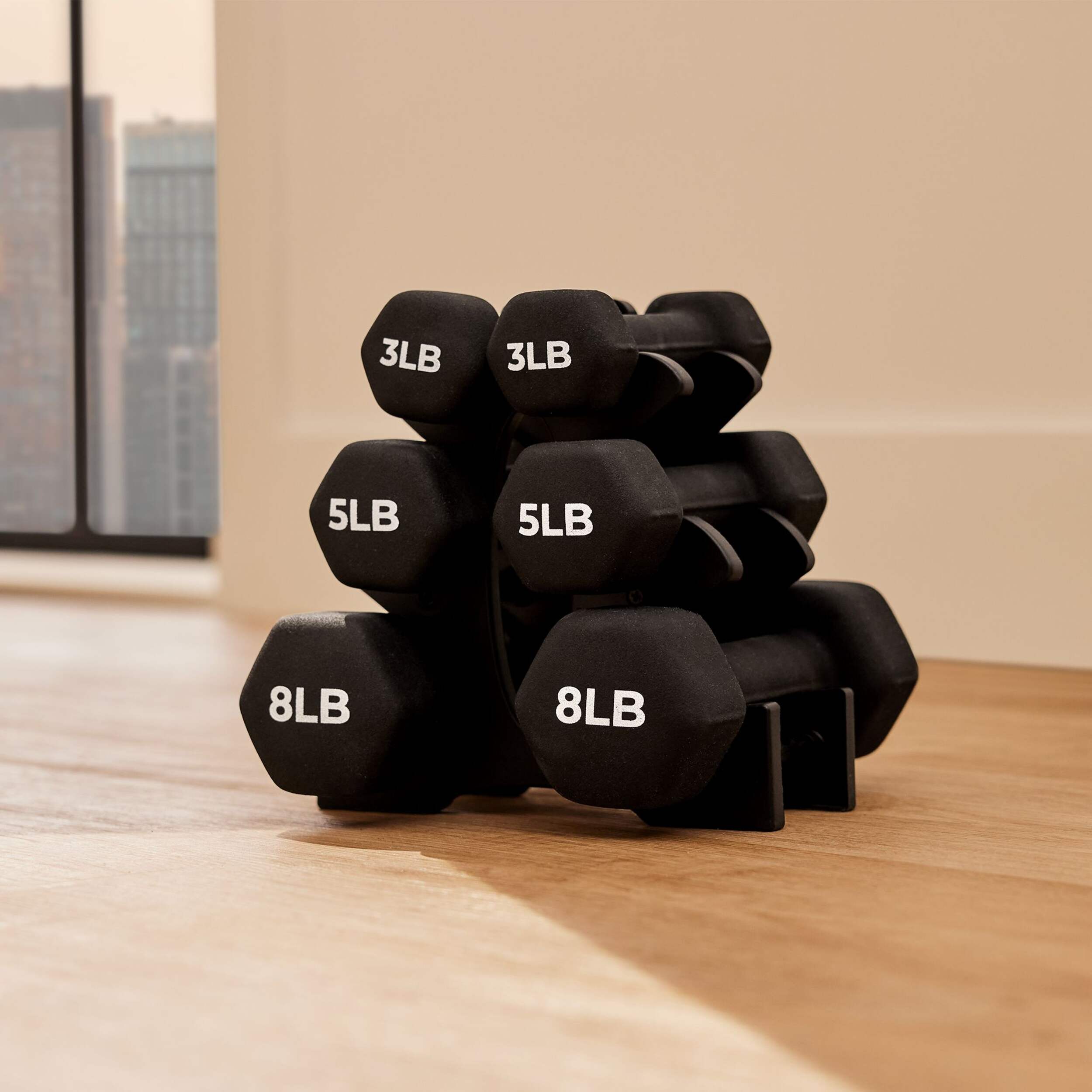 Includes rack to ensure dumbbells can be easily organized and out of the way