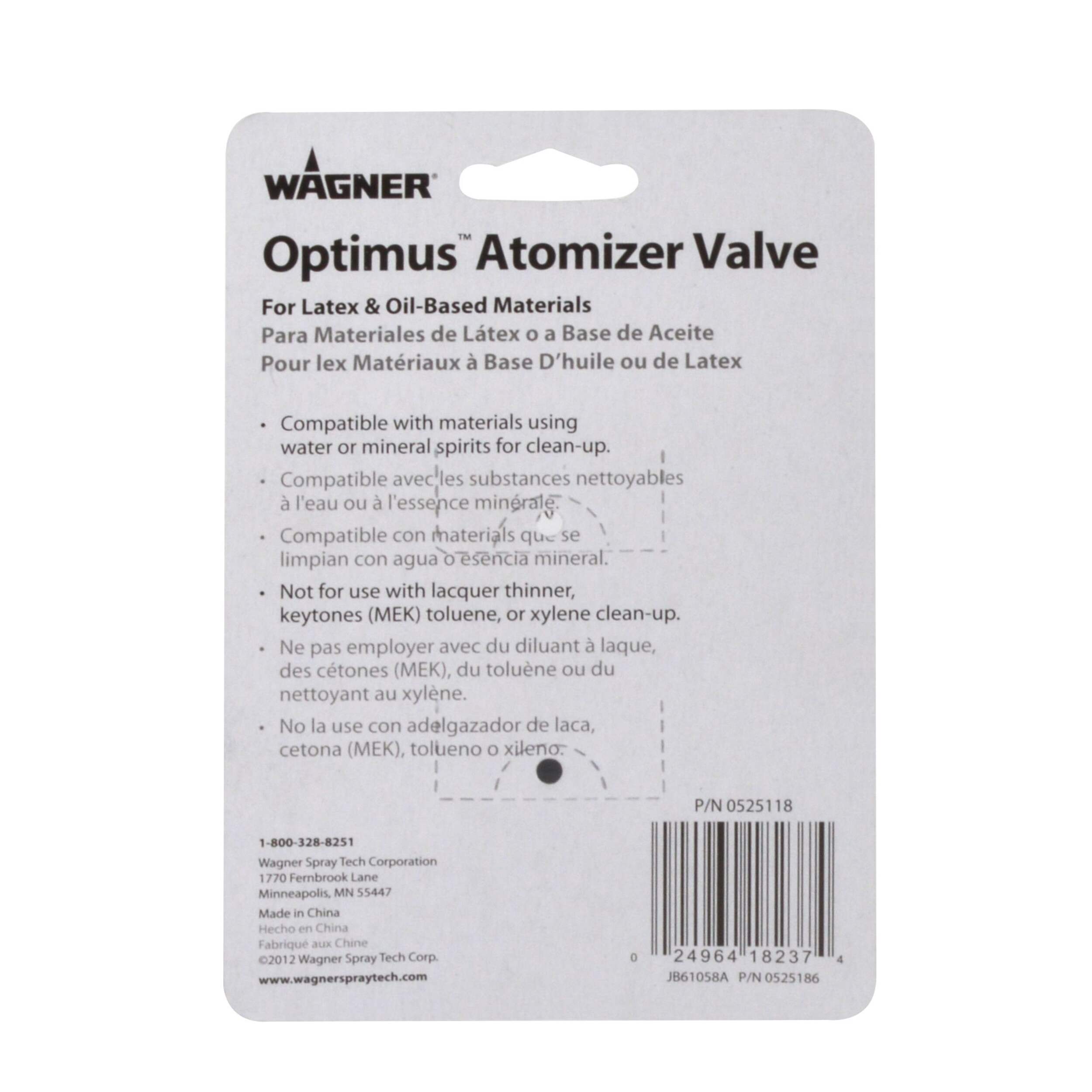 The Wagner Optimus Atomizer Valve helps maintain and improve the spray performance of Wagner power painters when the spray pattern begins to wear. Compatible with Wagner Optimus Cup Gun sprayers and Wagner Power Painters, this replacement valve restores an even, consistent spray so you can continue painting with precision. Whether you're tackling home projects indoors or out, this valve keeps your sprayer operating at peak efficiency.