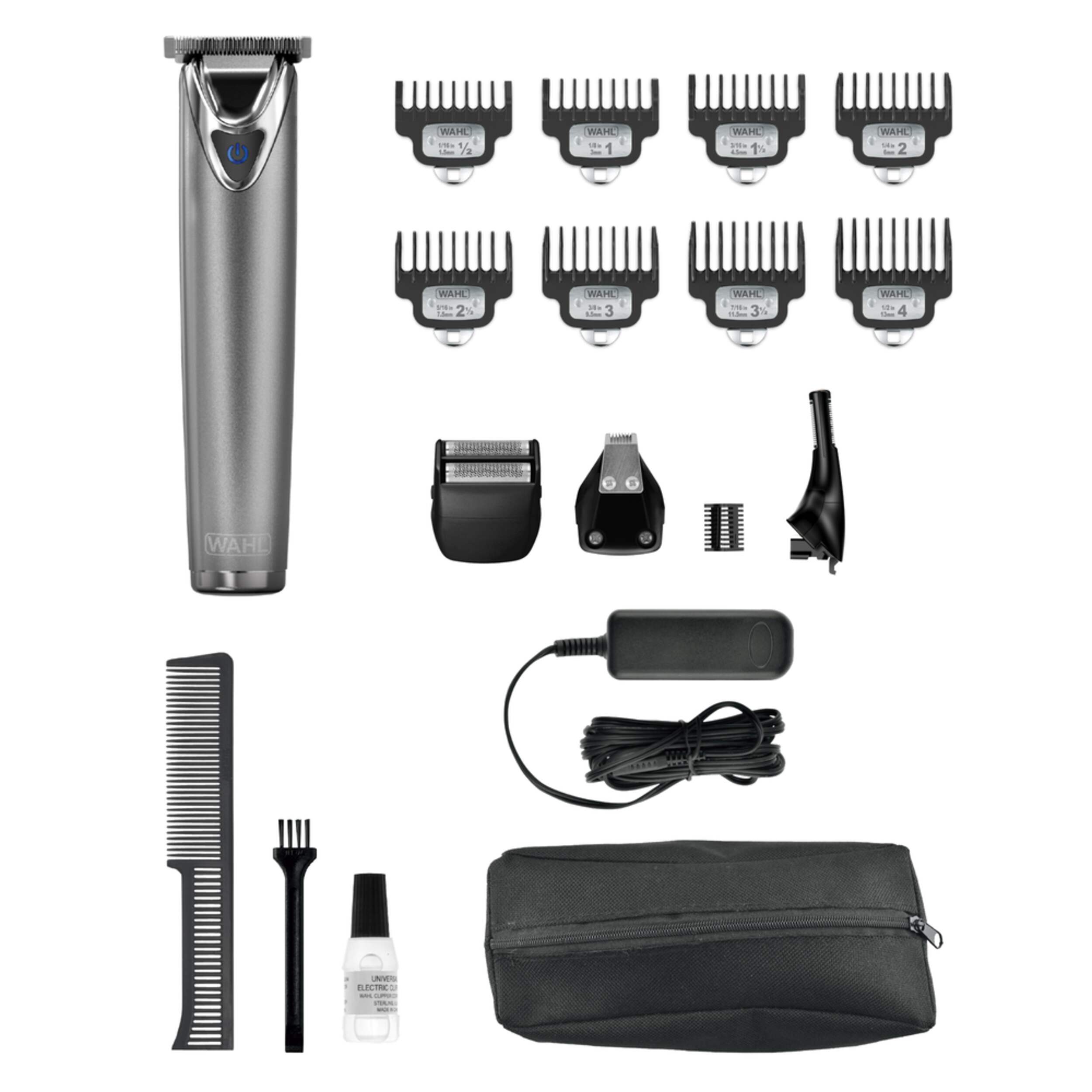 The versatile Wahl 3114 Lithium Ion Stainless Steel Multigroomer consists of lithium‐ion technology that provides a 3.5‐hour runtime with a single hour of charging. In a rush? Take advantage of the 1‐minute quick charge, which provides three minutes of shaving action. With specific attachments for the face, body, and beyond, this multigroomer trimmer has voltage compatibility that works all over the world.