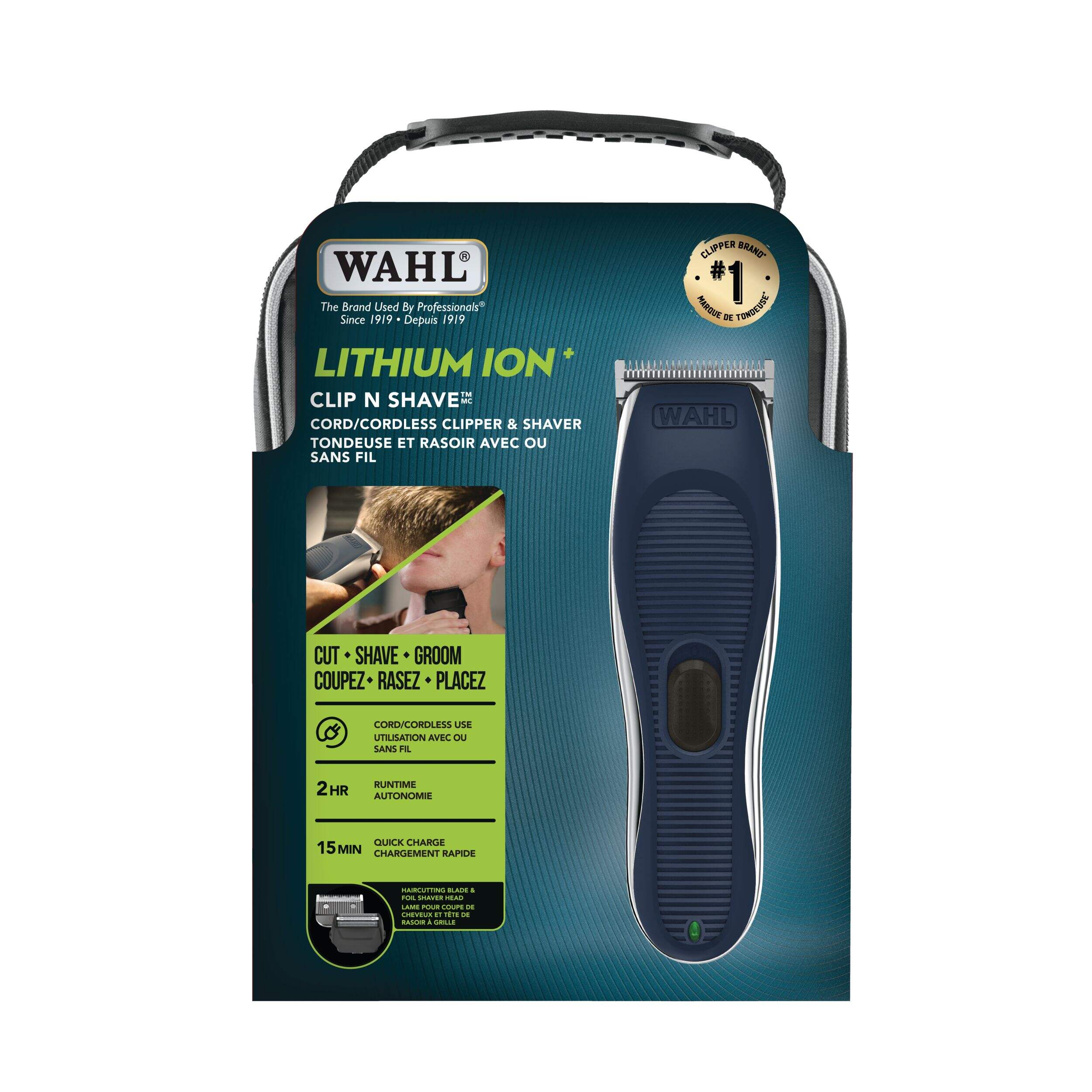 Enjoy a variety of shaving styles with the 2-in-1 innovative design of the Wahl 3274 Lithium Ion Clip & Shave Cord/Cordless Electric Clipper & Foil Shaver Kit. This quality electric clipper lets you choose between using the blade to cut hair or attaching the foil shaver head to bald, fade or shave. With a quick charge time of just 15 minutes, the clipper is ready any time you are for a full grooming or a quick touch up.