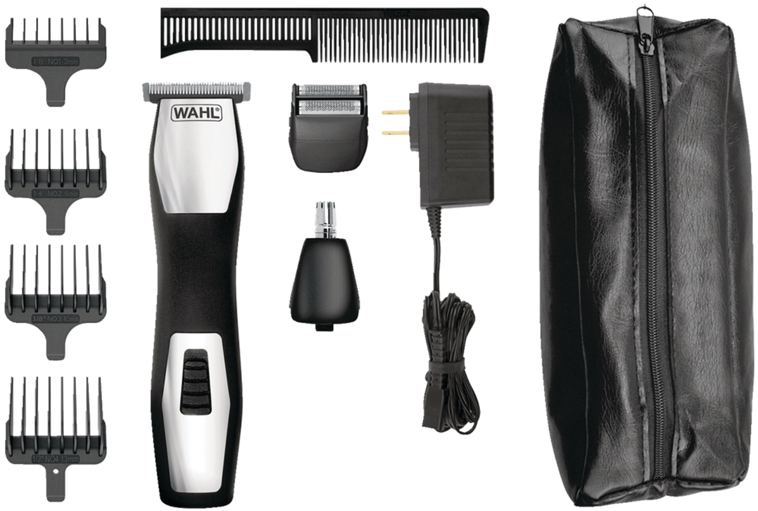 Includes: Trimmer with T-blade, Dual Foil Shaver Head, Rotary Head, 4 T-blade Guide Combs (⅛” - ½”), Charger, Soft Storage Pouch, Beard Comb, Blade Oil, Cleaning Brush & Instructions