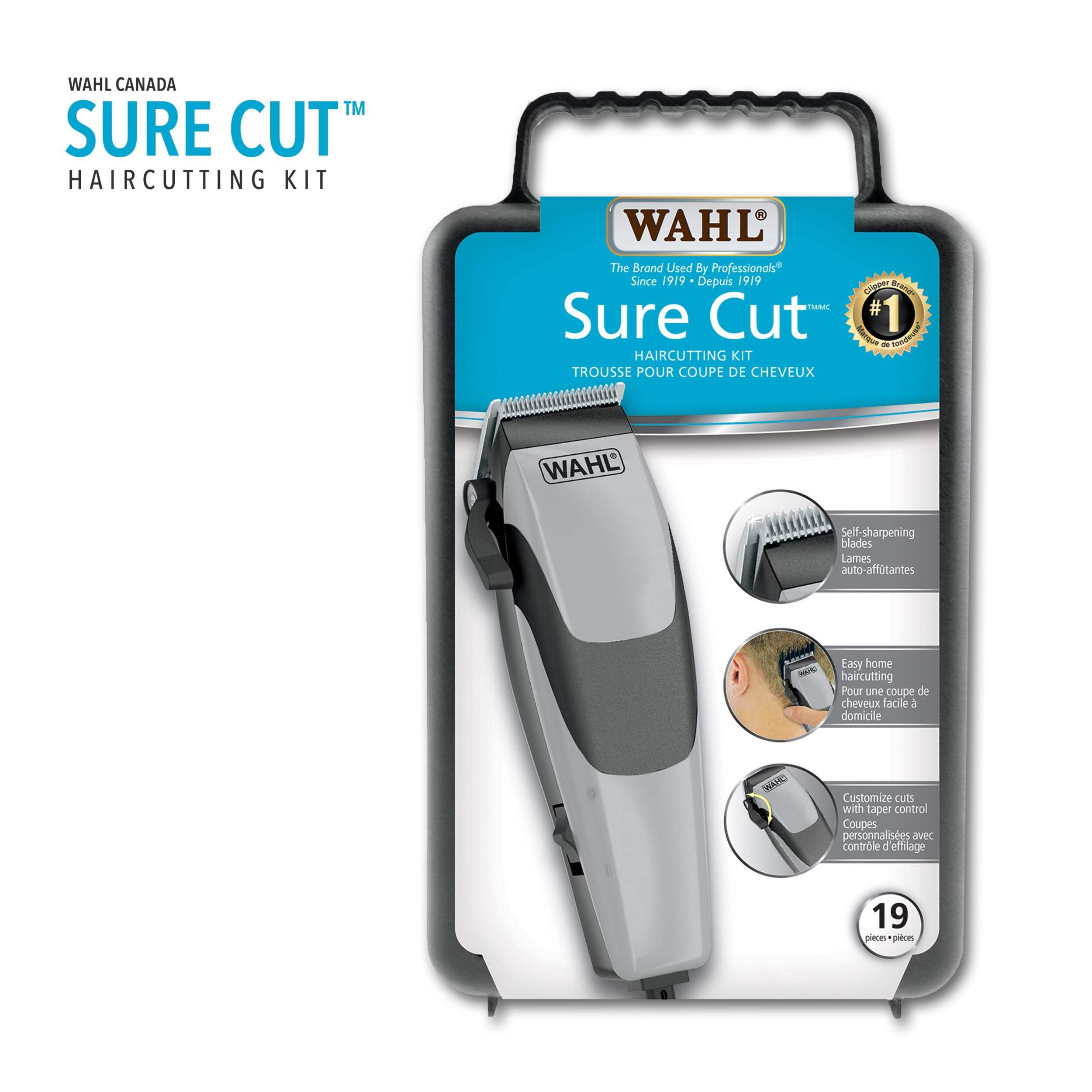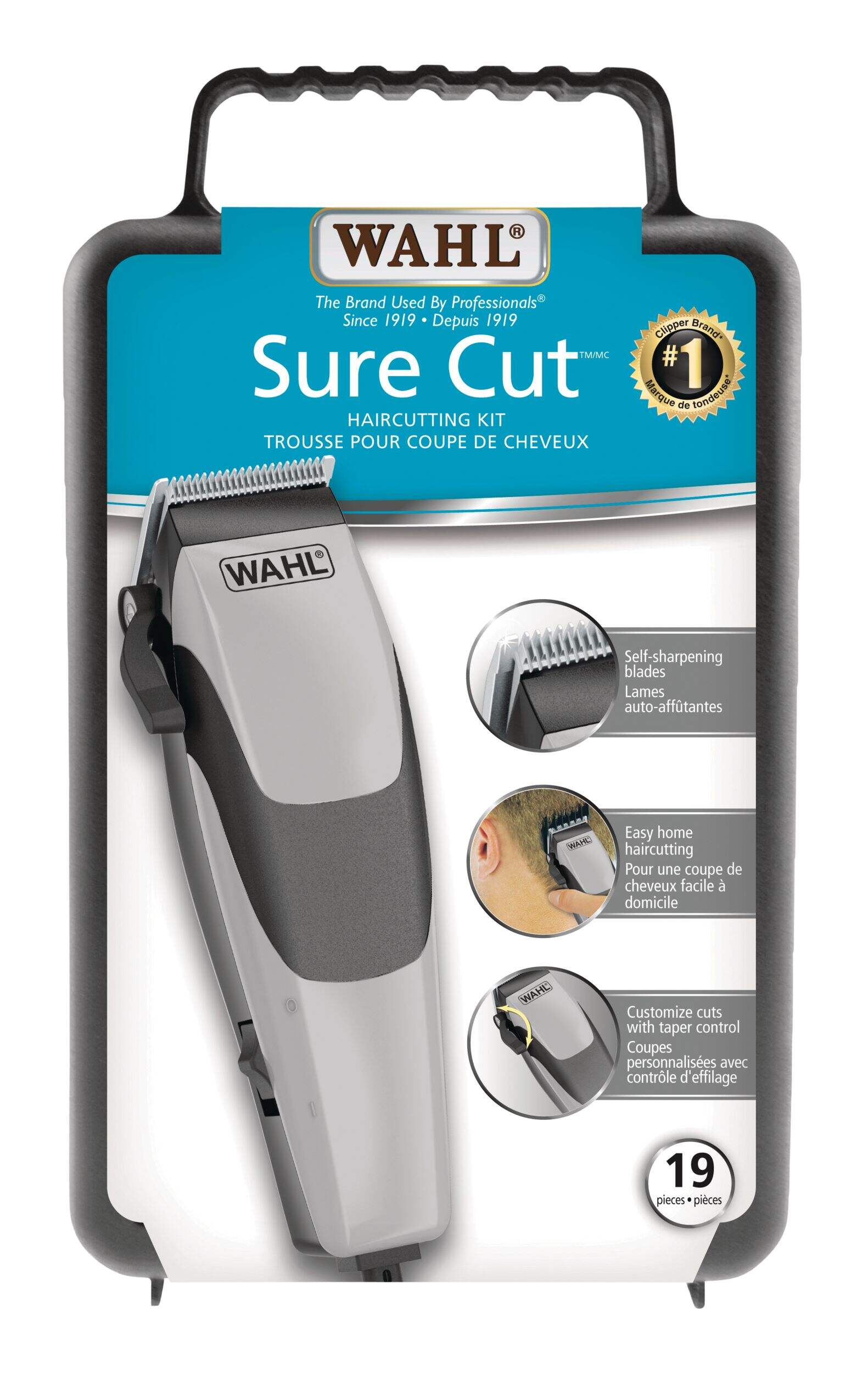 The Wahl Sure Cut Haircutting Kit provides everything you need for a professional-quality grooming experience from the comfort of your home. This 19-piece set is equipped with a high-performance trimmer/clipper featuring long-lasting, self-sharpening blades for snag-free cuts. With easy-to-follow instructions and ergonomic design, it's perfect for both beginners and experienced users alike who are looking to achieve a great haircut at home.