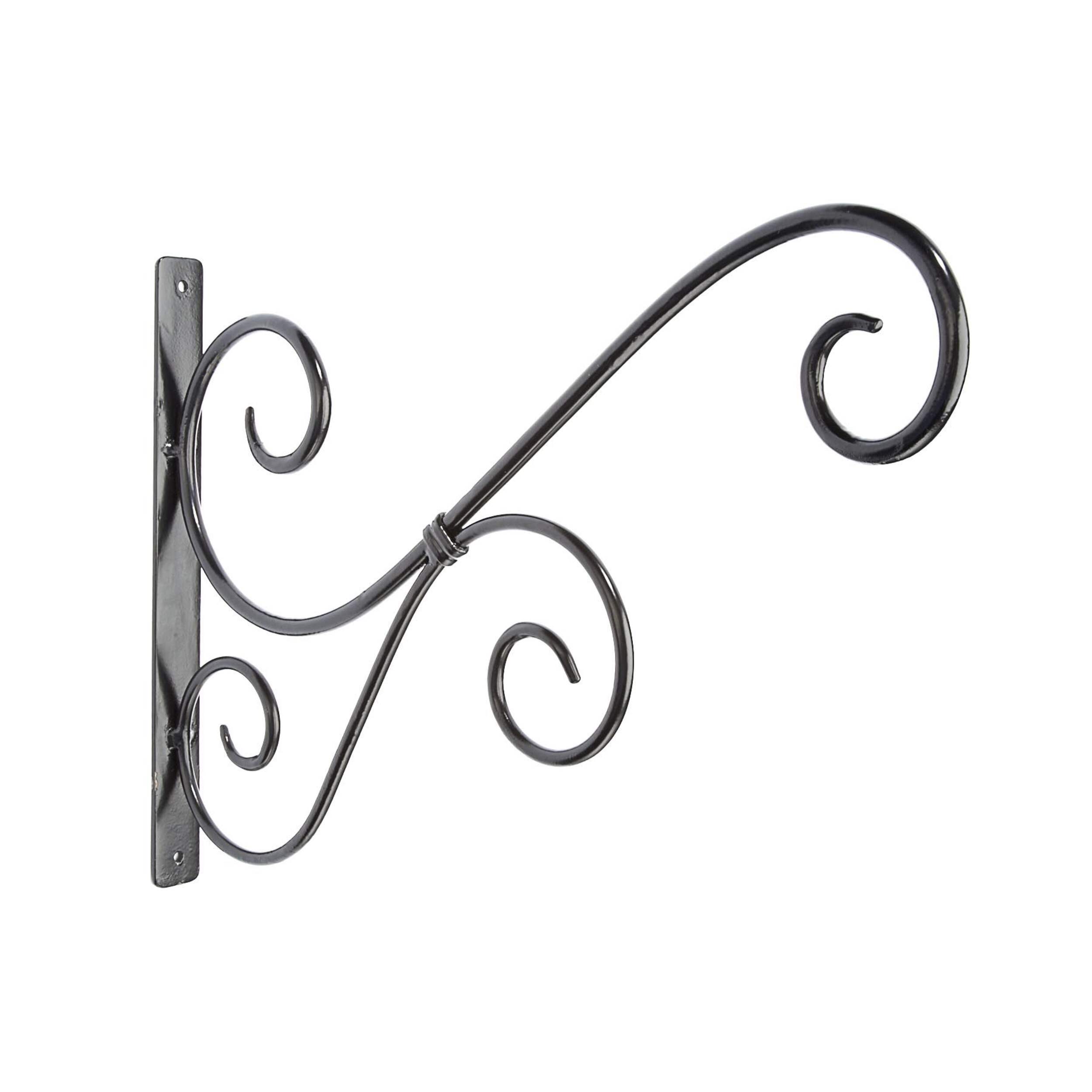 This 15-inch Wall Hanging Metal Plant Scroll Hook is an elegant way to display hanging basket planters. Made of heavy-gauge wrought iron, this bracket is finished with a powder coat paint, offering resistance against chipping and rust. The back plate stands at approximately 11 inches (27.5cm) in height, ensuring stability. The bracket's sleek black colour allows it to blend seamlessly with any decor. Its scroll design adds a touch of sophistication, making it a tasteful addition to your home or garden.
