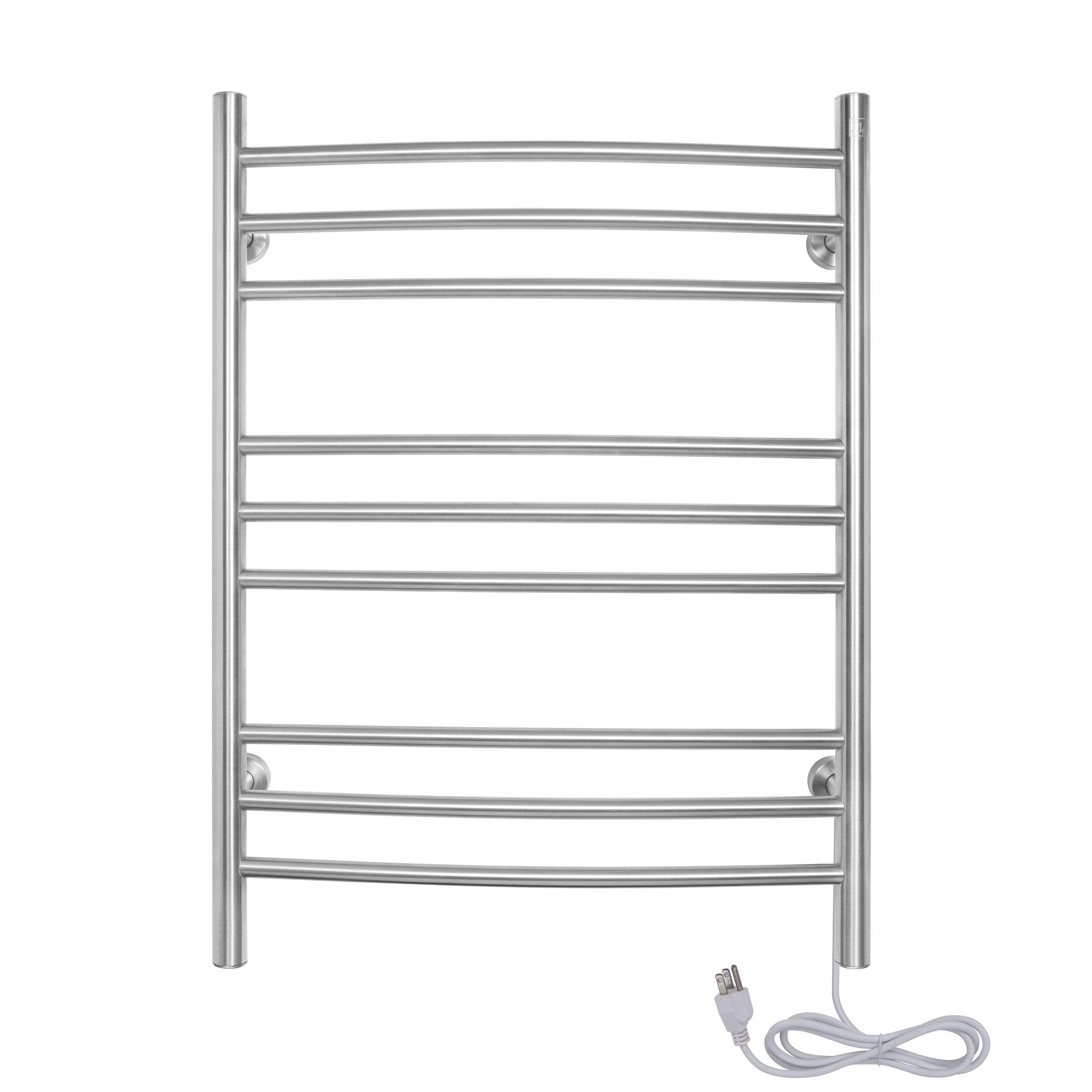 This towel warmer is made of high-quality stainless steel with a brushed finish and has enough room to accommodate plenty of towels or bathrobes. Each of the nine curved towel bars are designed to dry and warm large towels or bathrobes easily. Just imagine always feeling the comfort and coziness of a warm towel after your shower or bath, or waking up on a cold morning and being able to put on a warm bathrobe. This towel warmer is also dual connection which means that it can be used “as is” to plug into a standard 120 VAC outlet or it can be modified by a licensed electrician to have a hardwired 120 VAC electrical connection. When this towel warmer is installed with a hardwired electrical connection, there is no unattractive and cumbersome cover plate required because of its unique design. The Riviera is safe and is cETLus listed. It comes with an LED power switch and TempSmart overheat protection to prevent the unit’s surface temperature from exceeding 167F (75C). For peace of mind, the Riviera is covered by our 2-year manufacturer’s warranty. Optional towel warmer controls sold separately.