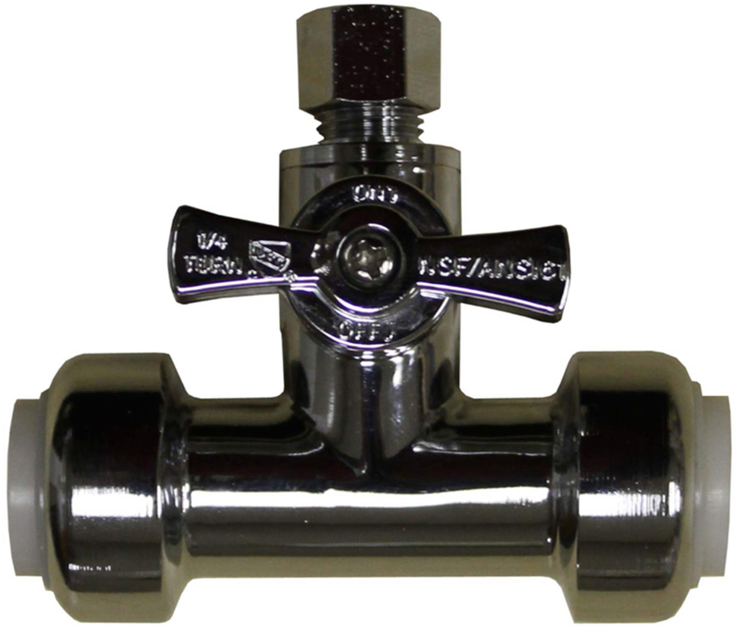 The Waterline Push N' Connect Brass Tee Valve, 1/2-in Push x 1/2-in Push x 1/4-in OD Compression, is an essential plumbing tool for speed and hassle-free water solutions. This brass tee valve lets you connect multiple lines at once. Simply push the pipes into the ports to create multiple outlets from a single inlet, ideal for branching water lines inexpensively and cleanly. No soldering or glues are required - just push and go. Keep your plumbing projects moving along with this push-fit brass tee valve.