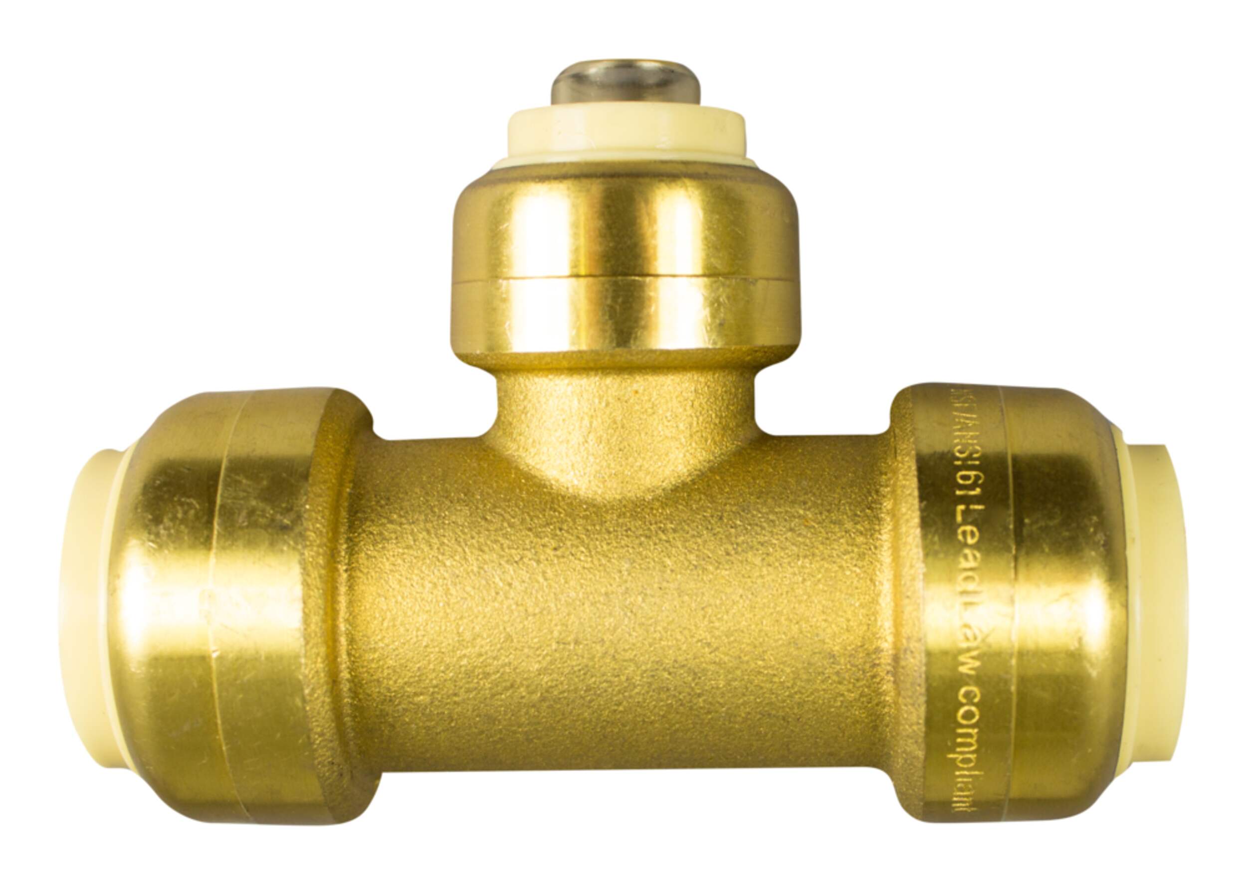 The Waterline reducing tee connector is designed to make connecting pipes easy. It features a push-fit design that allows you to quickly join copper, CPVC or PEX tubing. Commonly used to tap into an existing 3/4 inch water supply line to provide a 1/2 inch service line, this third party certified reducing tee is perfect for speedily diverting some of the flow to another pipe. Simply push the tubing into the fitting ports and the reducing tee connector will securely join and seal the pipes.