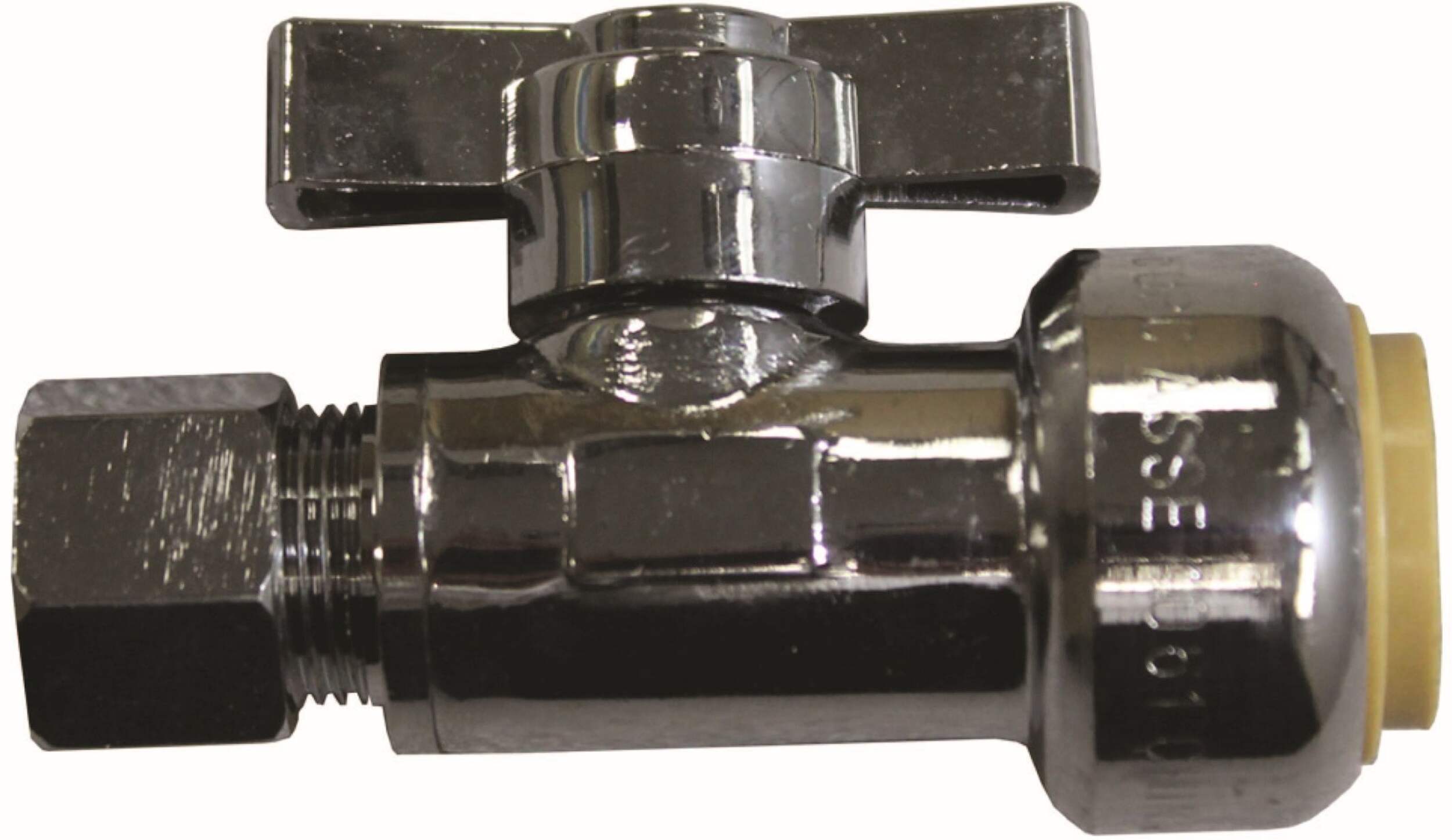 Quick Connect Straight Valve can be used with PEX, copper, CPVC and polybutylene