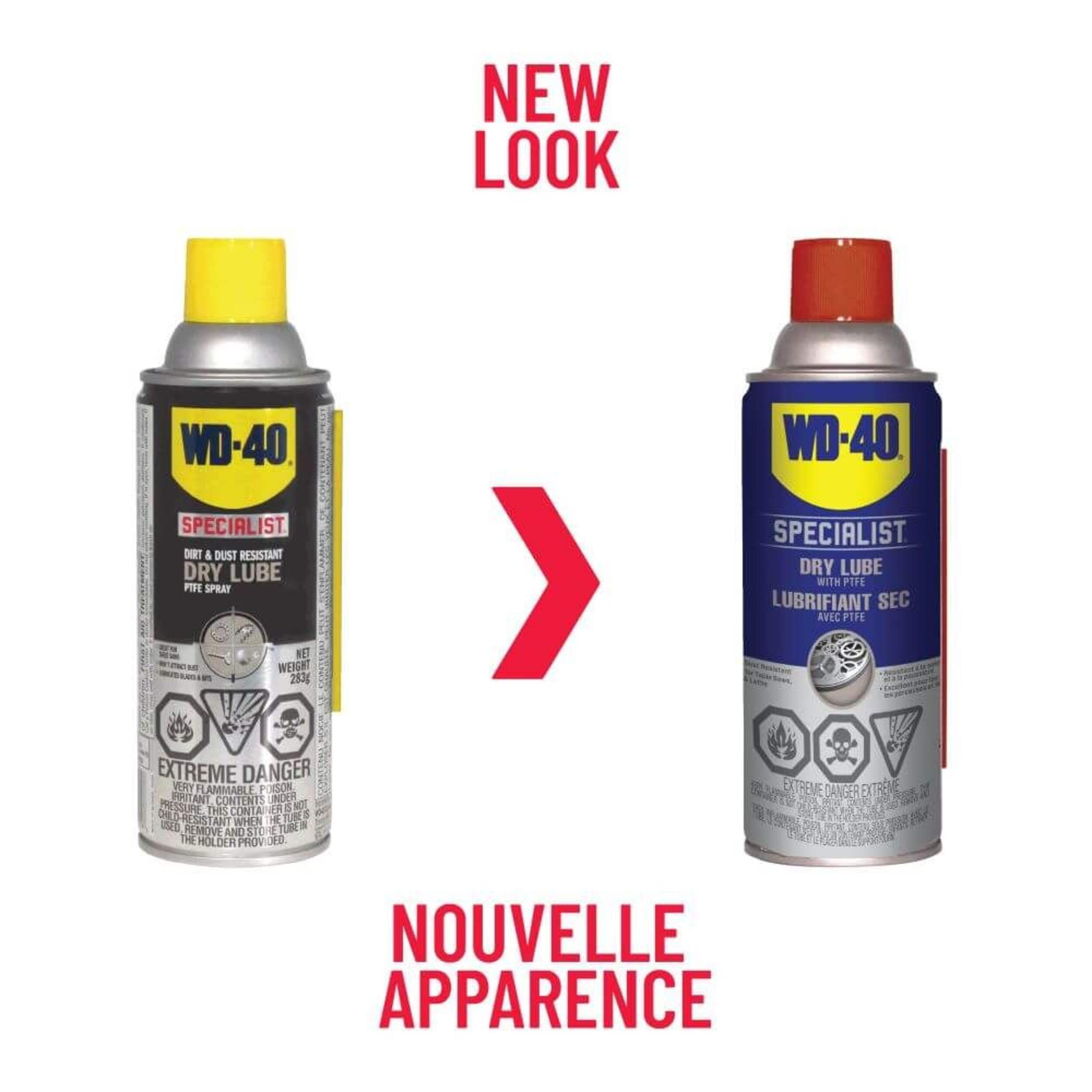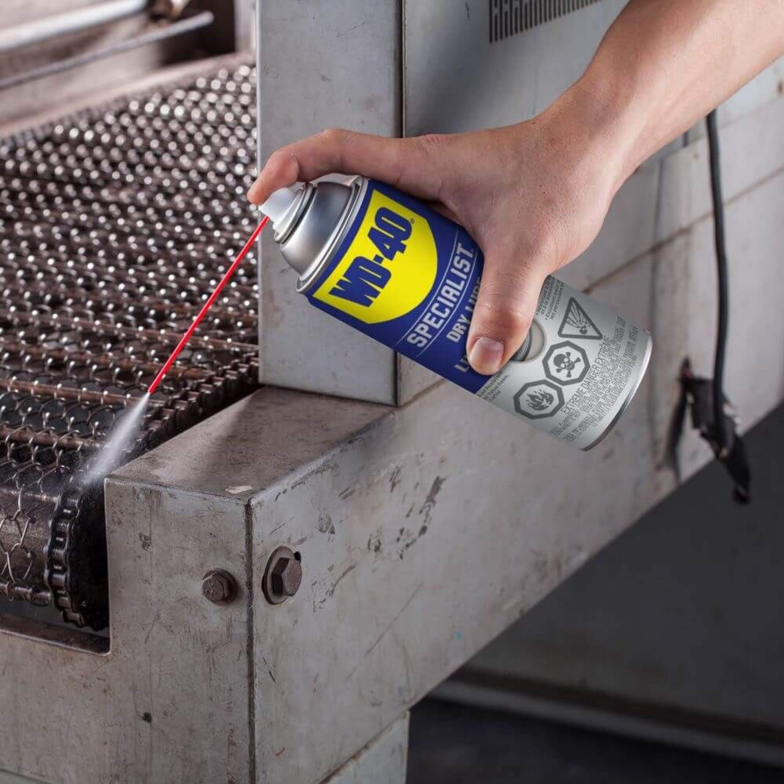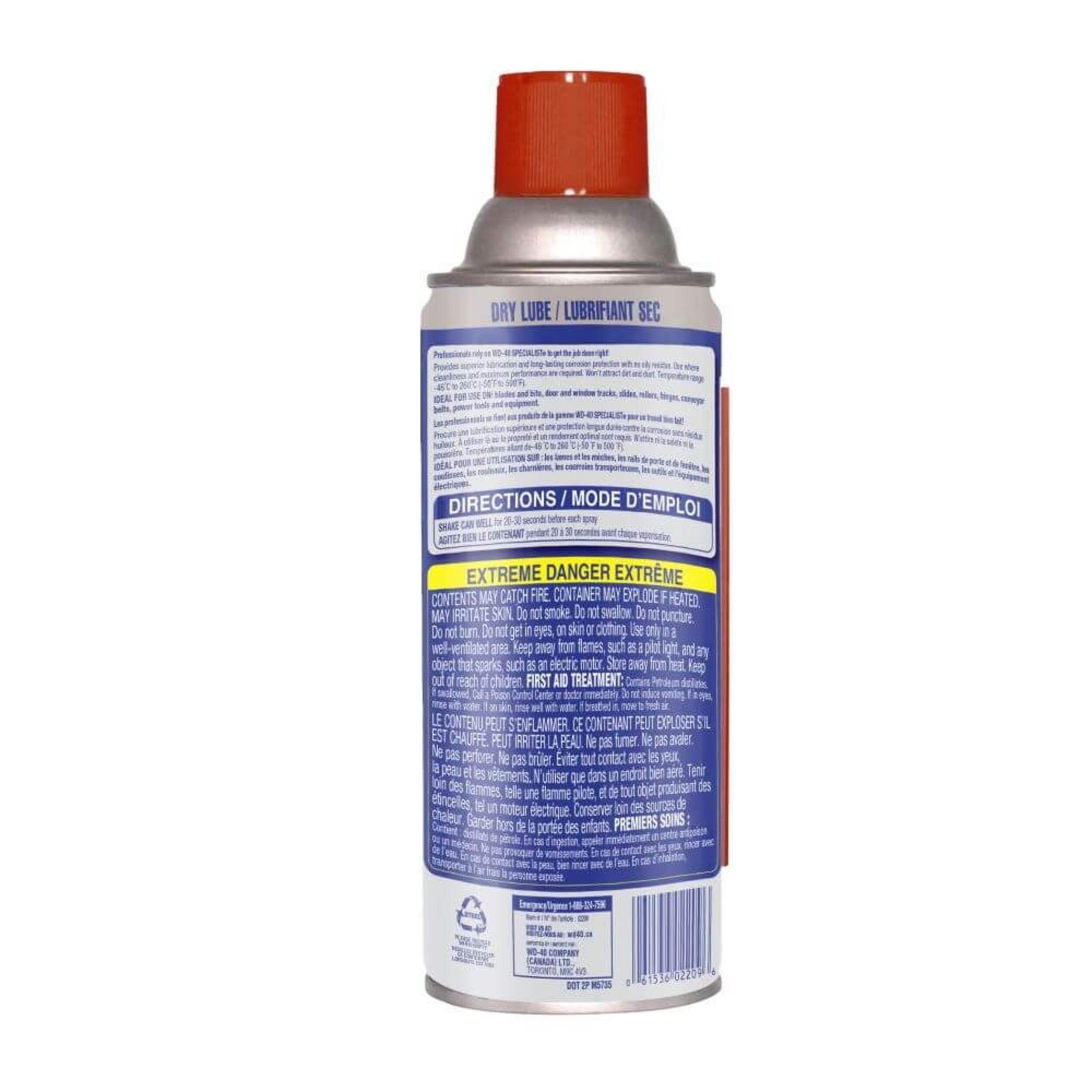 WD-40 Specialist Dirt and Dust Resistance Dry Lube PTFE Spray lubricates and provides long-lasting corrosion protection with no oily residue