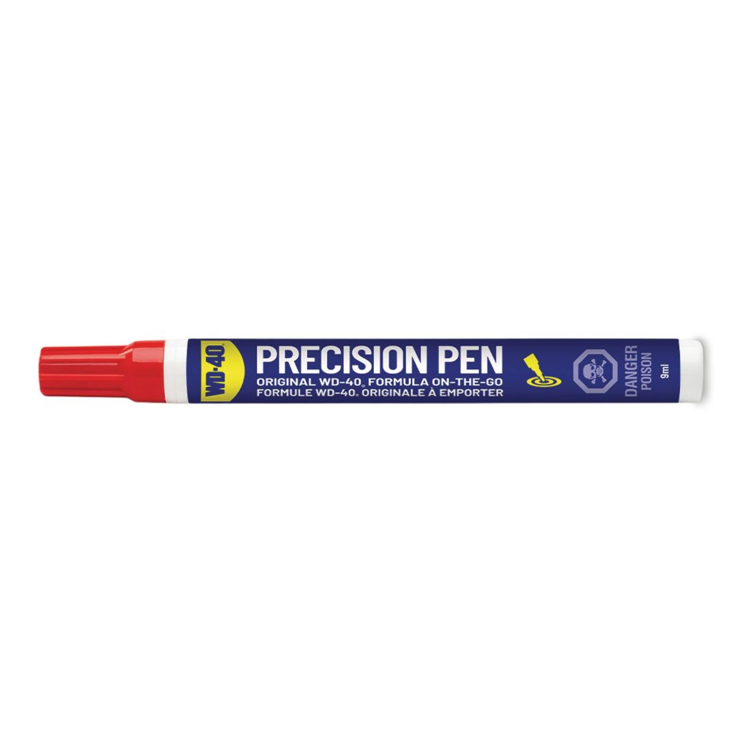 The WD-40 Precision Pen is engineered to deliver the Original WD-40 Formula with pinpoint precision. Whether you're dealing with squeaky hinges, rusty bolts, or stuck mechanisms, the portable Precision Pen is your go-to solution for small areas and tight spaces. The compact, pocket-sized design ensures you have the power of the Original WD-40 Formula with precise, controlled application at your fingertips, wherever you go — helping you work in tight spaces at work, home, and beyond.
