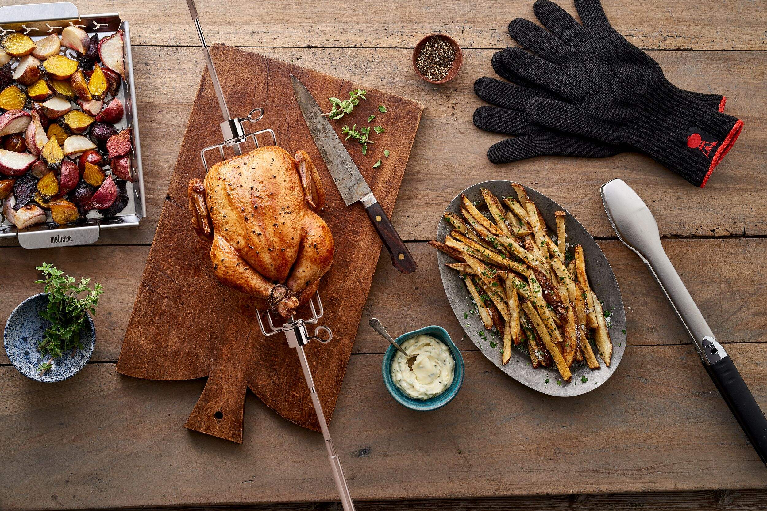 Turn your barbecue into a backyard rotisserie. Slow-roast a crispy yet moist whole chicken or tender ribs. The Rotisserie gently rotates food above the cooking grate, producing succulent, self-basted meat directly from your backyard kitchen.