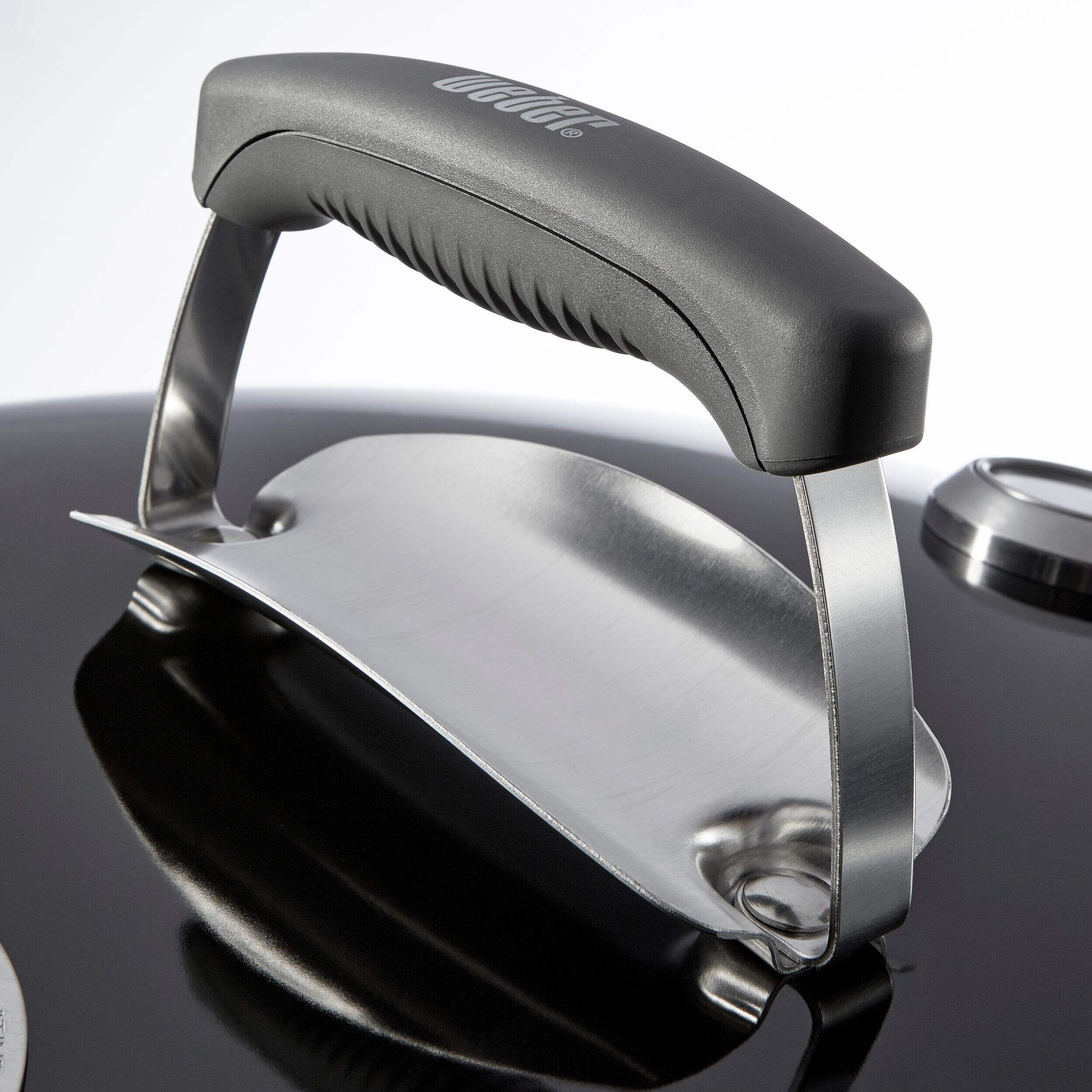 Tuck-Away™ lid holder keeps the lid off the ground while grilling