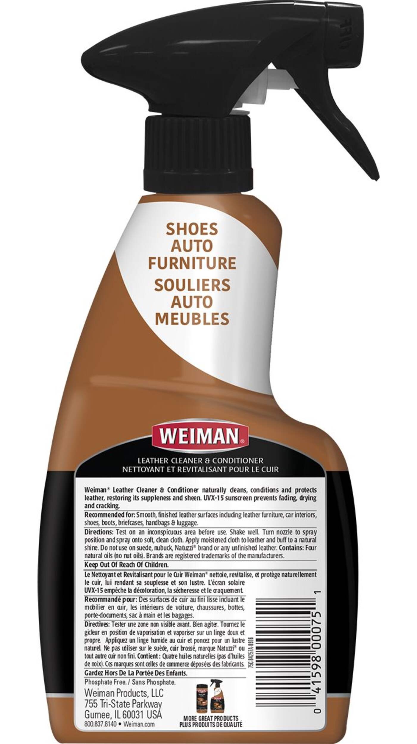 Cleans, moisturizes and conditions finished leather