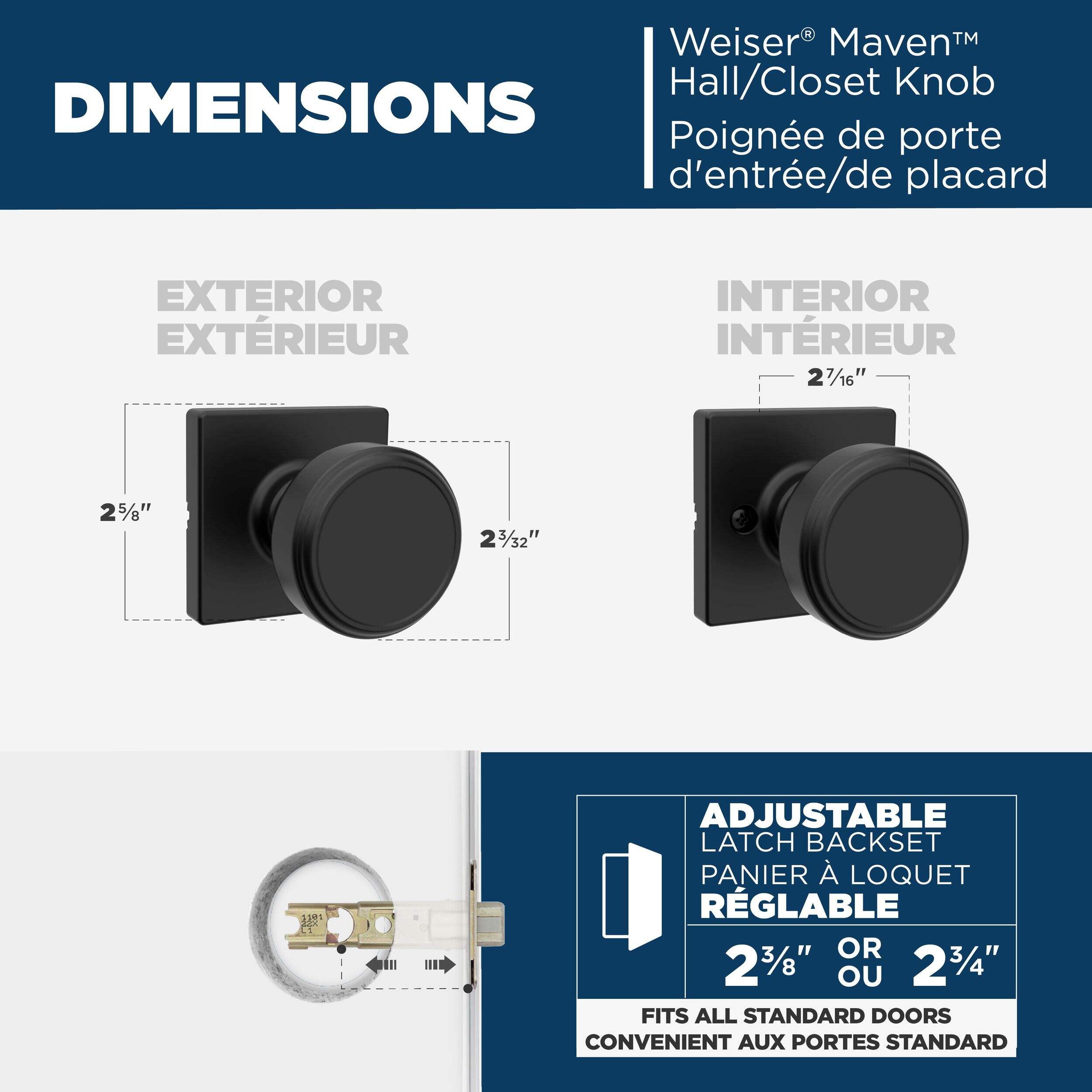 The Weiser Maven Passage Door Lock is ideal for doors that do not require a locking mechanism, making it perfect for closets and other interior doors where security isn't needed. This lock combines trusted security with practical style, offering quality construction in a beautiful, transitional design that complements any home décor. The durable chassis prevents knob wobble and ensures reliable performance. Installation is quick and easy with just a screwdriver, and all necessary hardware is included along with detailed instructions.