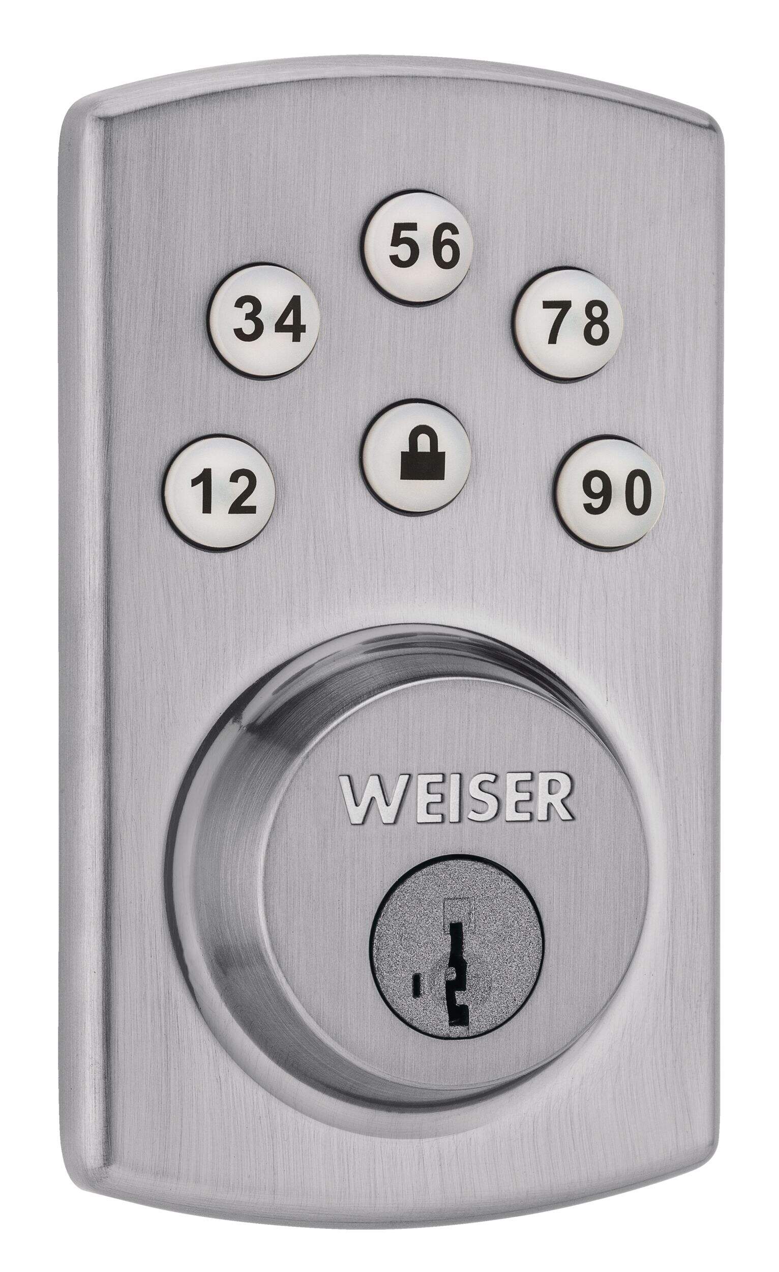 The Weiser Electronic Motorized Powerbolt 2 deadbolt makes keeping your home secure a breeze with its keypad entry and illuminated keypad. Simply punch in your custom code to unlock the deadbolt from the outside, while the interior thumb turn provides easy opening from within. The rekeyable SmartKey technology allows you to change access codes yourself with just a few simple steps, perfect for giving trusted helpers and house sitters temporary access. The satin chrome finish adds a sleek touch to your front entry, while the ability to store up to 6 access codes ensures everyone who needs to get in can without having to share the same key.