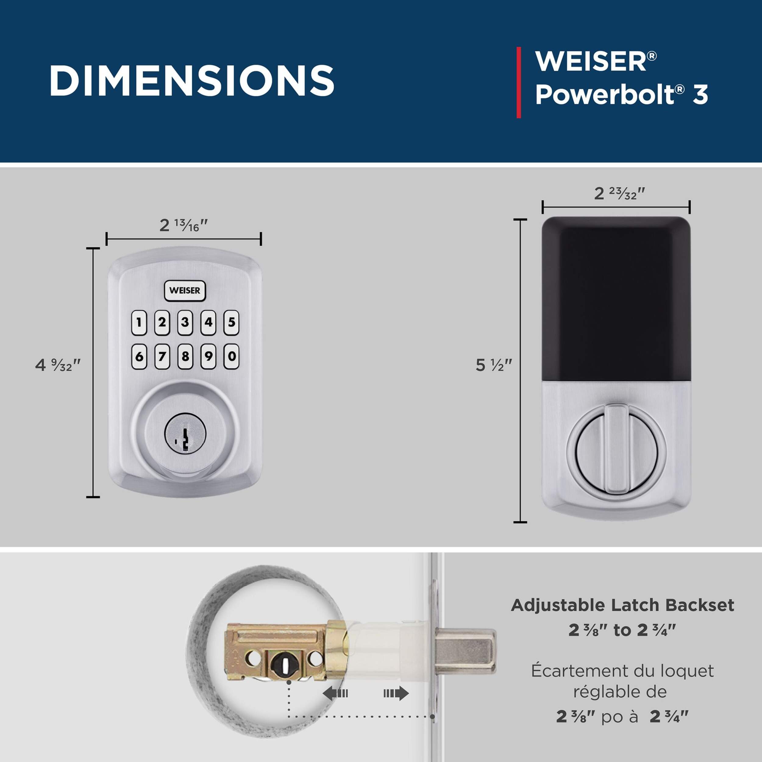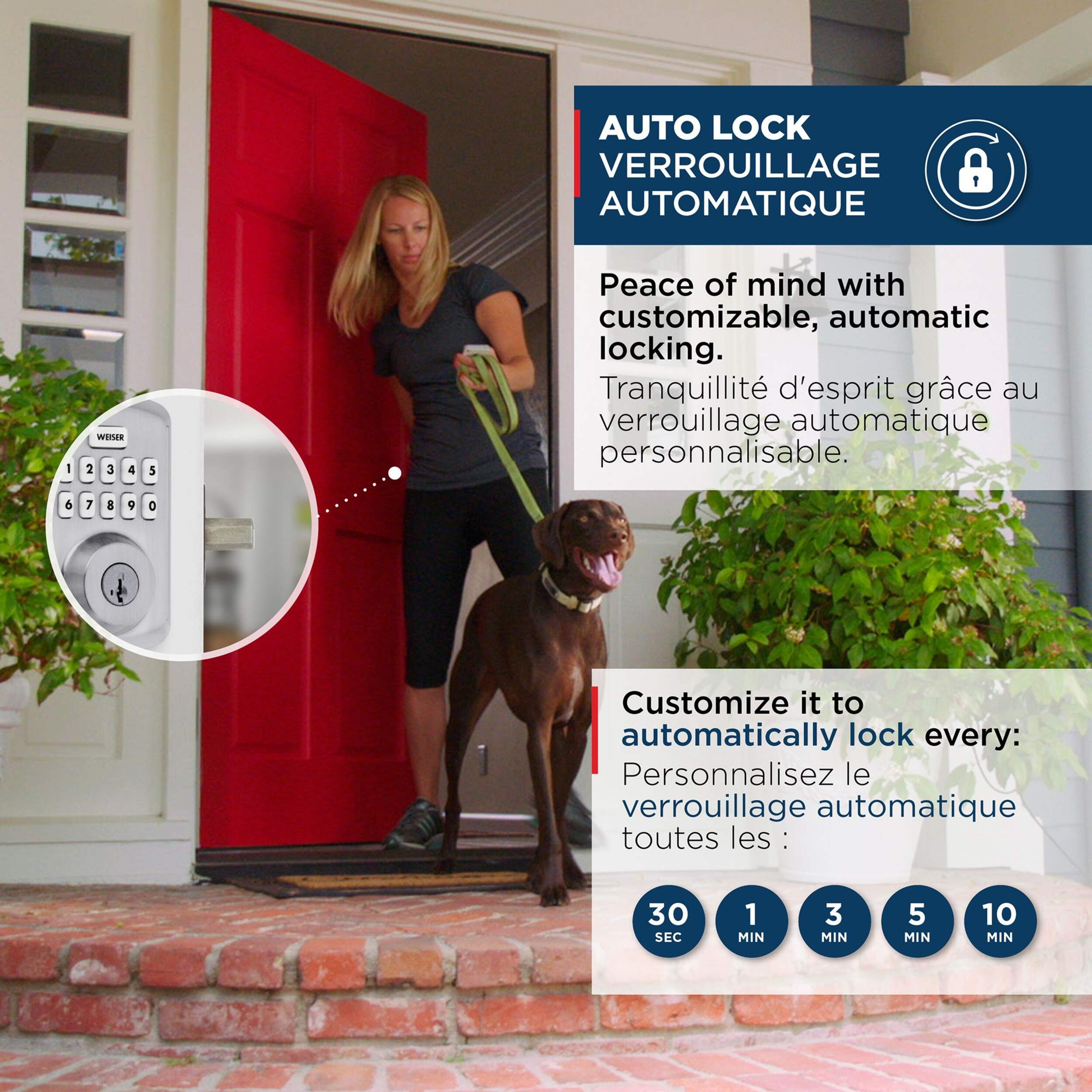 Upgrade your home security with the Weiser Powerbolt 3 Electronic Deadbolt Door Lock. Effortlessly access your home using keypad entry and customizable access codes for hassle-free entry. The auto-lock feature secures your door after a preset delay, enhancing safety. With SmartKey technology, you can easily re-key the lock for added convenience. Plus, built-in intrusion alerts activate a 1-minute alarm and lockout after three incorrect code entries, helping to ensure your home remains secure at all times.