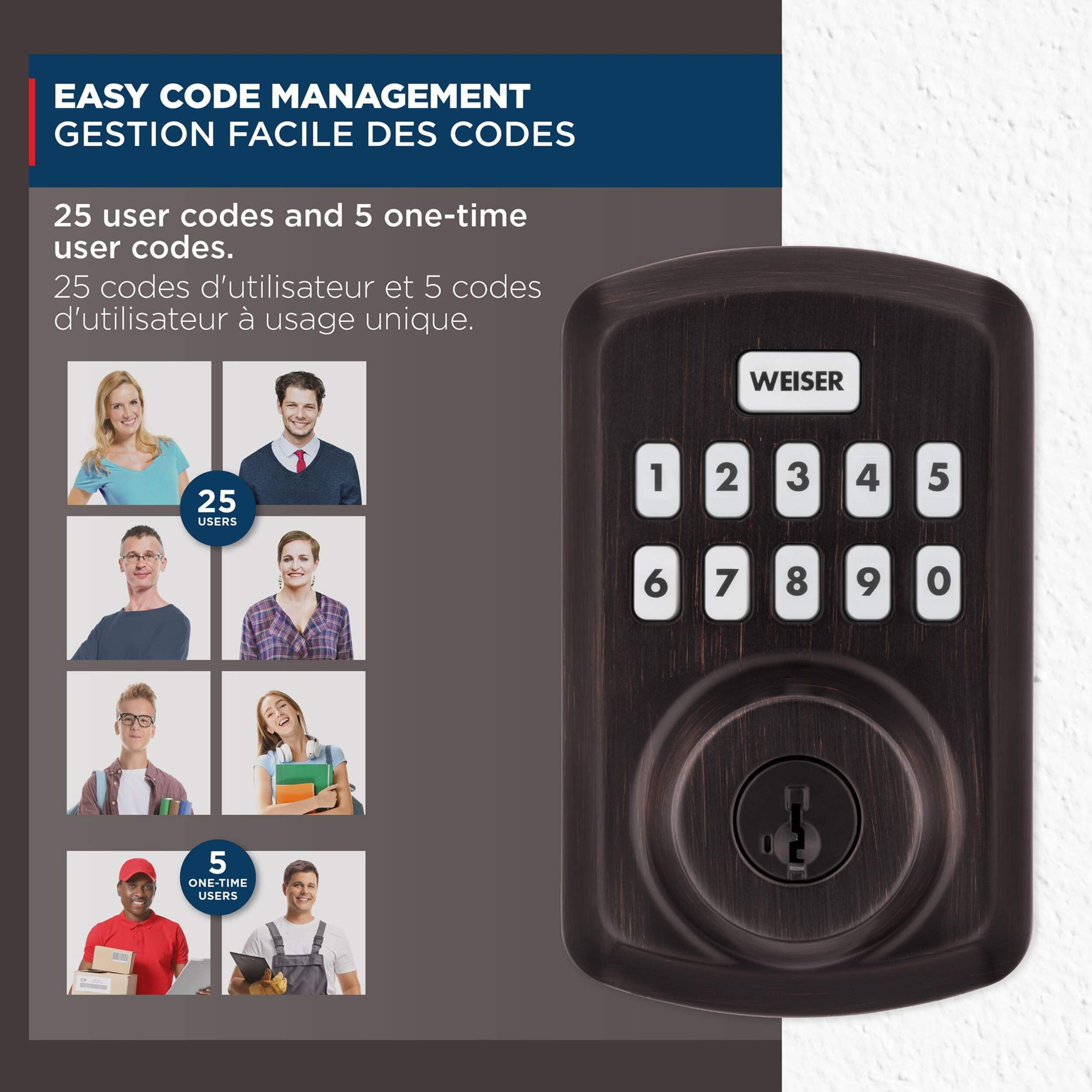 Customize up to 25 user codes, 5 one-time user codes and 1 programming code that lets you edit or delete user codes whenever you need to