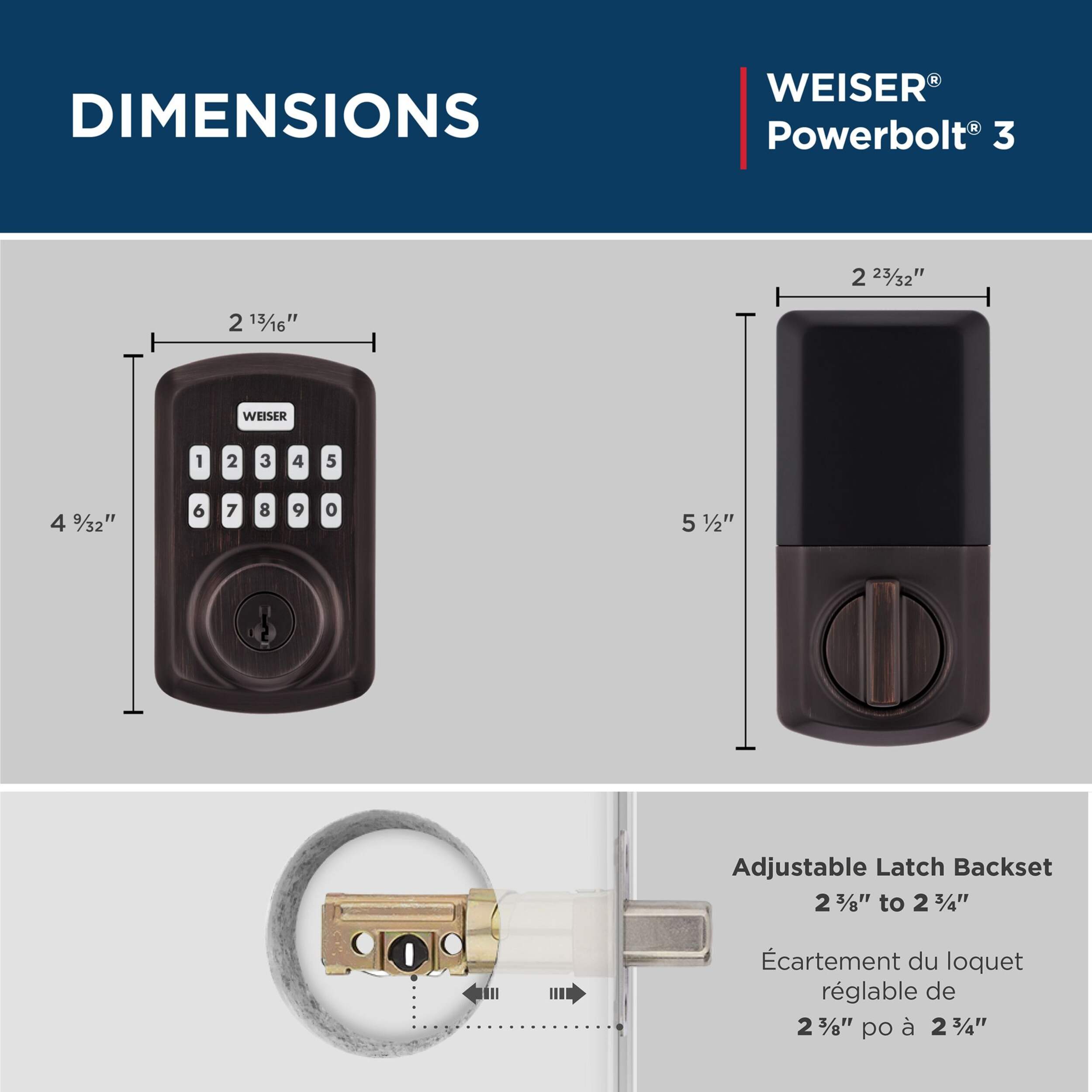 Upgrade your home security with the Weiser Powerbolt 3 Electronic Deadbolt Door Lock. Effortlessly access your home using keypad entry and customizable access codes for hassle-free entry. The auto-lock feature secures your door after a preset delay, enhancing safety. With SmartKey technology, you can easily re-key the lock for added convenience. Plus, built-in intrusion alerts activate a 1-minute alarm and lockout after three incorrect code entries, helping to ensure your home remains secure at all times.