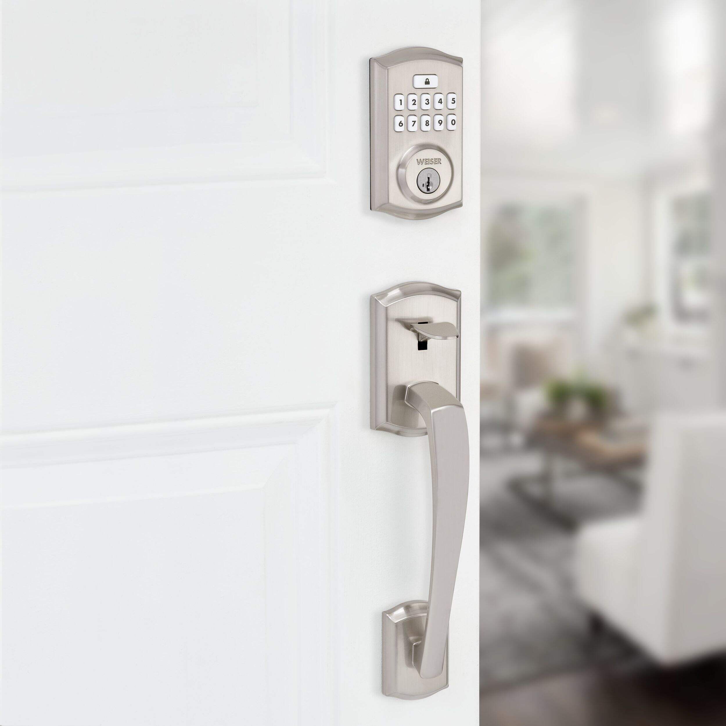 Add security and style to your home with the SmartCode® keypad electronic deadbolt. Designed with a sleek style to complement your home's interior, you can lock up your home and never have to worry about keys. To gain entry, simply enter your personalized code, while locking is as easy as touching a button. SmartCode is easy to install, program and use and operates on 4AA batteries. It also features SmartKey® re-key technology as the back-up keyway. This entry lever can be locked or unlocked by using the keypad or key from the outside as well as the turn button from the inside.